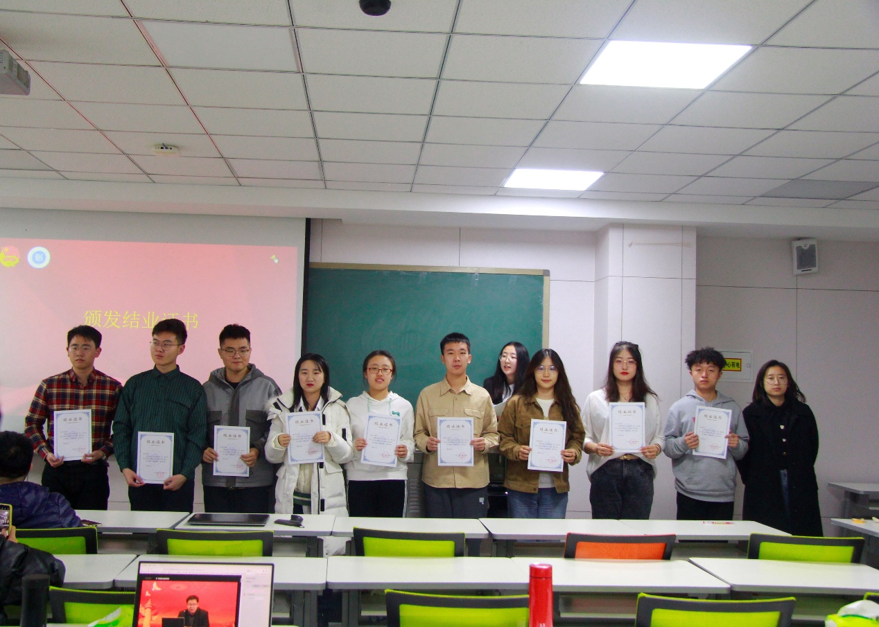 活动伊始,全体起立,合唱中国共青团团歌。随后在展示环节中,学习班以小组为单位,分别进行了学习成果展示:王上华、李子荣、杜艺轩朗诵诗歌《黄河颂》,以澎湃的热情讴歌了黄河的宏伟气势,表达了中华儿女一往无前的勇气;刘禹含、朱天恒、李明蔚朗诵了爱国诗歌--《青春中国》,从鸦片战争到五四青年,再到今天新中国的繁荣富强,体现了青春中国的昂扬斗志;廖任飞、怀子阳、马晓艺小组朗诵诗篇《西风颂》,表达了对革命终将胜利的坚定信念;李剑文、陈聪、李珍进行了《没有共产党就没有新中国》的合唱表演,歌声洪亮、曲调激昂,唱出了广大人民群众对中国共产党的衷心拥护和跟党走的坚定信念;吴钰凡、赵仕杰进行了情境朗诵《行者无疆》的成果展示,向同学们分享了自己暑期实践的收获与感悟。展示环节结束后,青年学习班(第三期)优秀学员代表陈聪同学发表了结业感言,分享了一年来他在学习班的心得体会。接下来,张洁老师、孙月老师为学习班全体成员颁发结业证书。活动最后,孙月老师总结发言,回顾了青年学习班(第三期)的办班历程与建班初心,并对学习班同学未来的学习生活表达了期望。