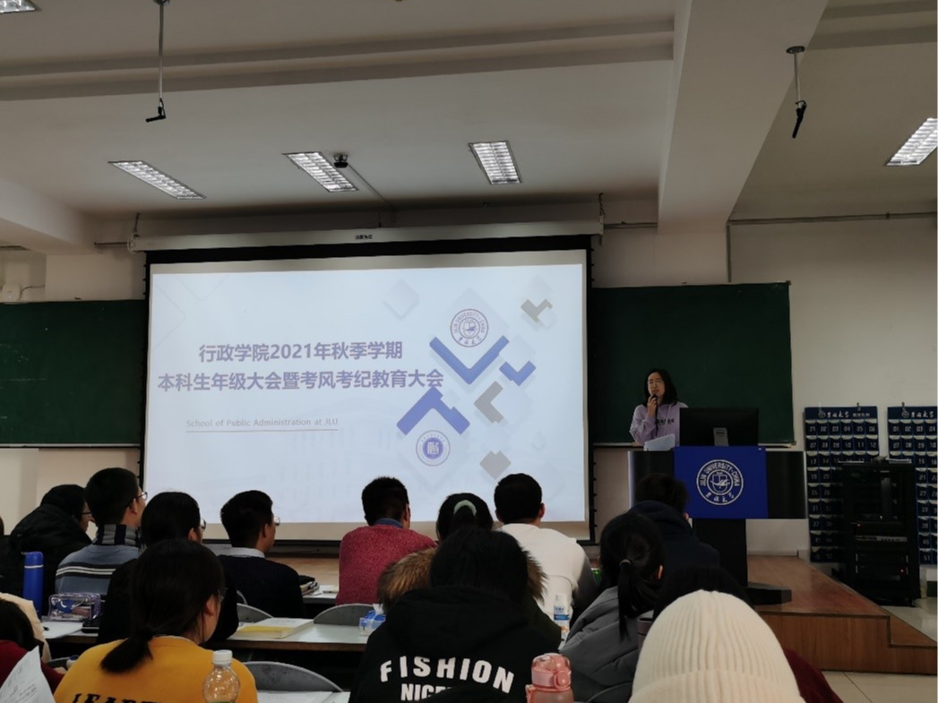 于第三教学楼第十二阶梯教室召开了2021-2022学年本科生年级大会暨考风考纪教育大会。学院党委副书记兼副院长、纪委书记张洁,教学办公室主任连永超,本科生辅导员高卓嫱、孙月出席本次大会, 2019级、2020级、2021级全体本科生参加大会。