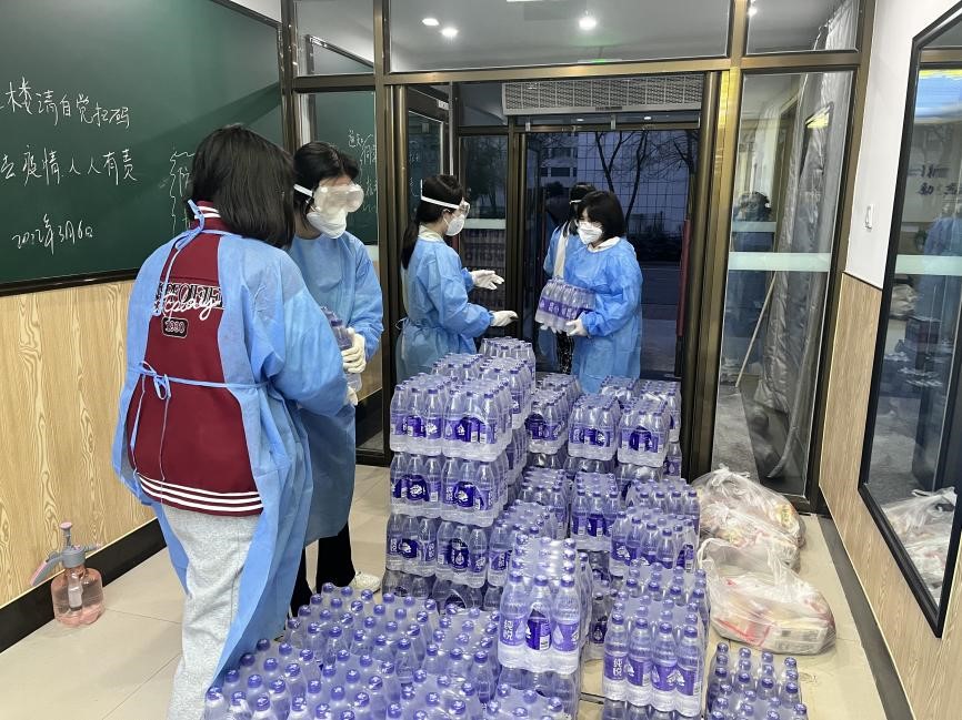 积极开展防疫工作,全面打响疫情防控阻击战。为配合学校封校封寝期间静态管控的各项工作,一群可爱、坚强的行政姑娘积极投身到志愿工作中。她们穿梭于楼道之间,满怀热情地为同学们送去防疫物资与生活物品,以汗水与担当诠释“她”的力量,于疫情一线绽放铿锵芳华。