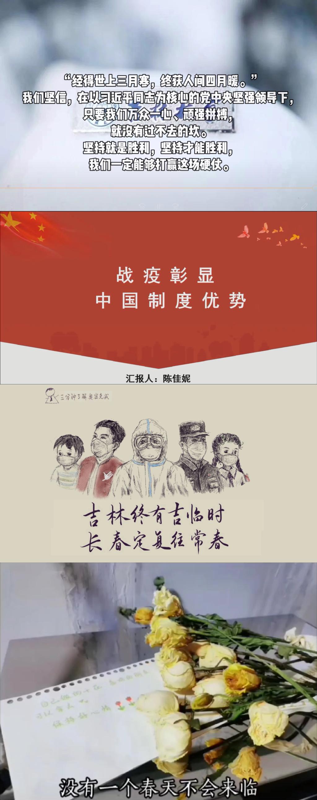 本次防疫思政微视频立项工作不仅激发了同学们的创作热情,还展示了同心偕行、乐观抗疫的青春精神,激励行政学子以更加饱满精神投身到专业学习与校园疫情防控工作中去。足音铿锵奋力行,春光不负赶路人。我们也始终相信,长春疫情防控保卫战必将取得决战决胜阶段的最终胜利!(文:ManHub