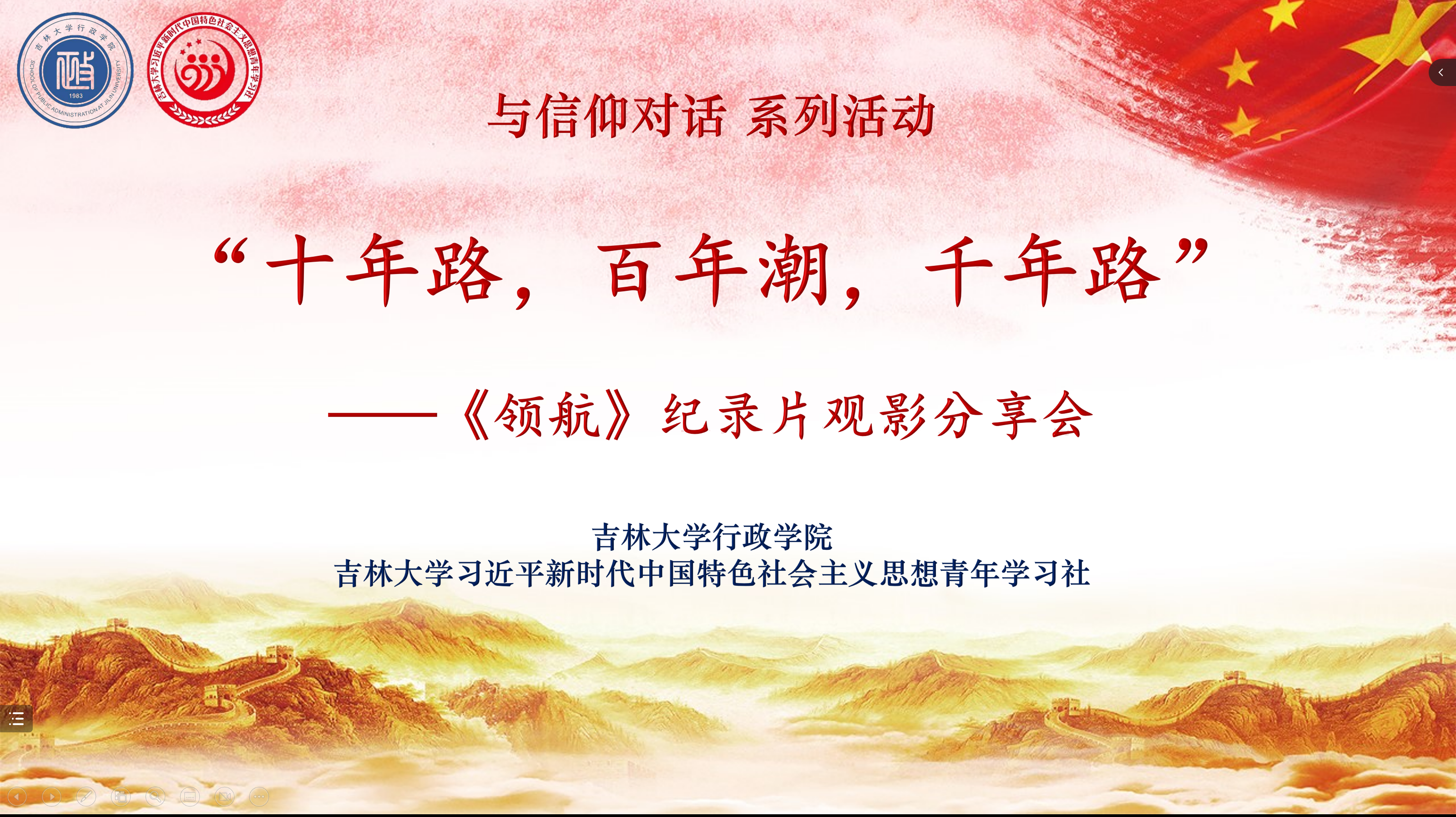 习近平新时代中国特色社会主义思想青年学习社于2022年10月23日上午在线上成功举办首期“十年路,百年潮,千年路”——《领航》纪录片观影分享会。