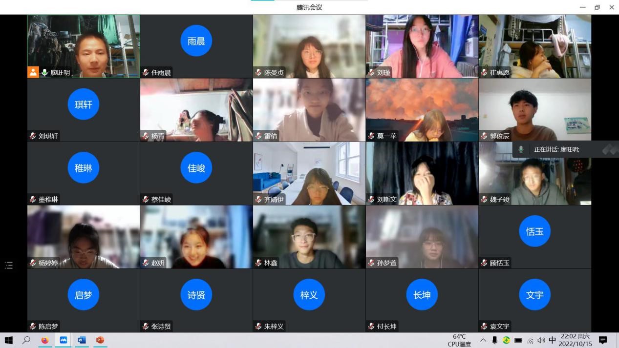 2022级本科生各班团支部在线上举办了“弘扬中国精神、凝聚中国力量”主题团日活动。