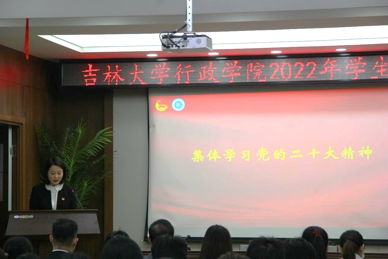 上午10时,大会在铿锵的校歌中拉开了序幕。初始,团委负责人高卓嫱领学党的二十大精神。她号召同学们,认真领会、深入讨论党中央提出的科教兴国、战略人才强国战略,立足新时代、新征程党的历史使命,努力提高自己的知识水平,锤炼品德、勇于创新,力争做能够担当民族复兴大任的时代新人。
