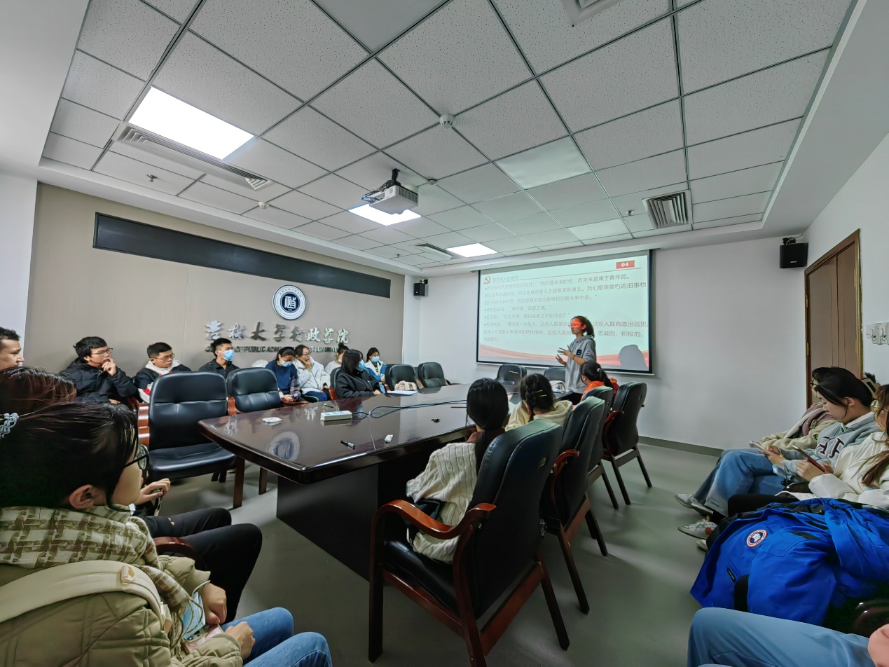 本次主题团课分为三部分:学习解读、讨论环节、总结环节。开始阶段,各班团支书对习近平总书记的二十大报告展开解读。王梓(2022级本科生)着重带领大家学习大会主题和重要内容,介绍了中国式现代化的基本方向与基本路径。毕妍欣(2022级本科生)对材料中提到的过去五年的工作和新时代十年的伟大变革进行深入解读。交流互动环节中,姜欣彤(2022级本科生)认为同学们应当坚定马克思主义信仰,将中国特色社会主义理论知识贯穿于我们的生活实践之中。孙明(2022级本科生)表示同学们应当认真学习,日后为民族复兴贡献自己的力量。刘婷婷(2022级本科生)鼓励同学们要坚定不移听党话、跟党走,怀抱梦想又脚踏实地。