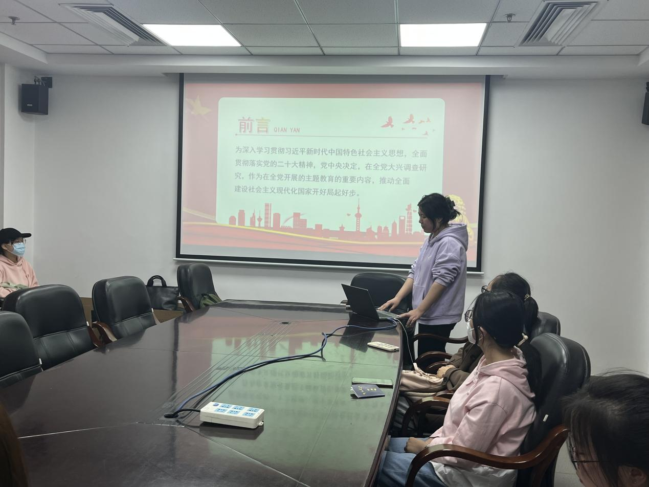 本次团日活动包含学习解读,交流分享,总结收获三个环节。在学习解读环节中,毕妍欣(2022级本科生)指出学习《关于在全党大兴调查研究的工作方案》的时代背景与重要意义。张蔚涵(2022级本科生)针对《关于在全党大兴调查研究的工作方案》的总体要求、调研内容、方法步骤、工作要求四部分做了分享讲解。在交流分享环节中,082204班团支部开展了《关于在全党大兴调查研究的工作方案》问答活动,活动以同学抢答的方式进行,在丰富同学们对调查研究相关知识的了解的同时,增进了同学们之间的友谊。陈思宇(2022级本科生)表示,在学习了《关于在全党大兴调查研究的工作方案》之后,深刻感受到了调查研究是谋事之基、成事之道,没有调查就没有发言权,没有调查就没有决策权;正确的决策离不开调查研究,正确的贯彻落实同样也离不开调查研究。在总结收获环节中,左宏渐(2022级本科生)认为,同学们要继承党的优良传统,积极运用所学的专业知识,进行调研活动并投身于广大的社会实践之中,在实现中华民族伟大复兴中国梦的新征程上奋勇前进,让青春在全面建设社会主义现代化国家的火热实践中绽放绚丽之花!