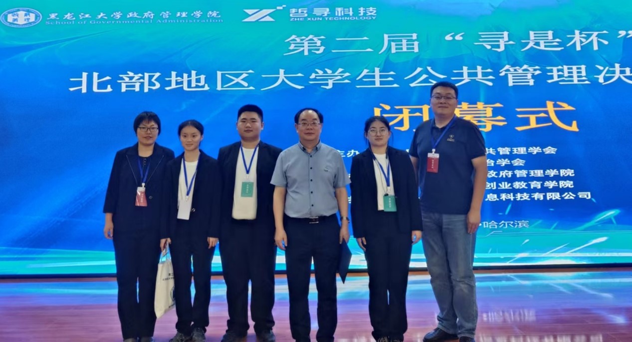 参加了第二届“寻是杯”北部地区大学生公共管理方案设计与决策对抗大赛。本次大赛由黑龙江省公共管理学会、黑龙江省政治学会主办,黑龙江大学政府管理学院、黑龙江大学创业教育学院承办,来自北京、天津、河北、山西、内蒙古、辽宁、吉林、黑龙江等地27所高校的28支队伍,共140余师生参加了此次比赛。