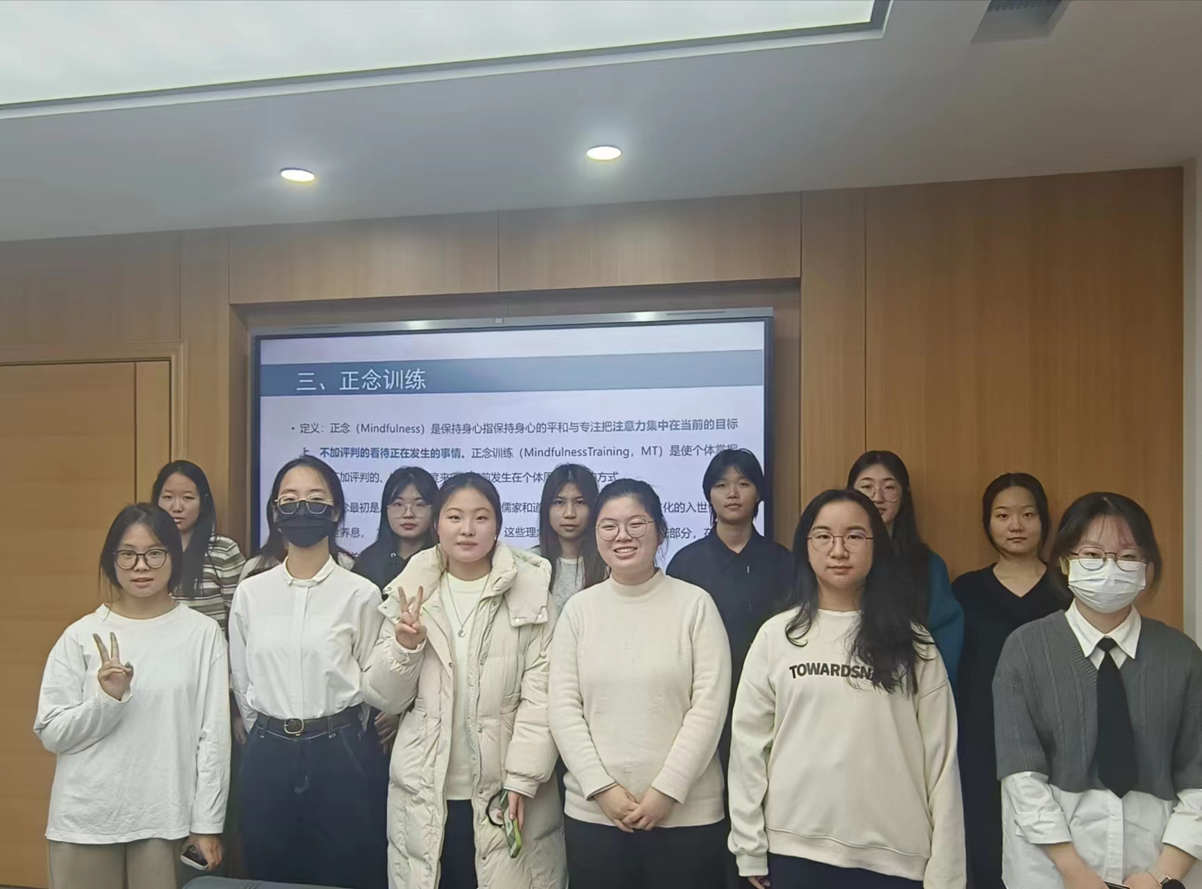 与学生心理健康指导中心依托院级心理辅导室合作开展“正念减压”团体心理辅导活动,活动由哲学社会学院“开心使者团”成员吕妍同学主持。