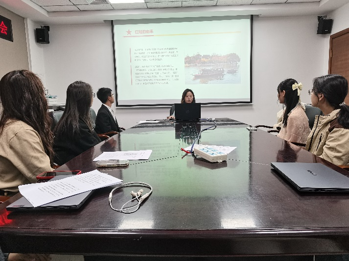 重温党史环节,领学人谢劲竹(2021级本科生)带领大家深入学习了嘉兴南湖红船的历史背景和深远意义。集体探讨环节,学习班分成三个小组,每个小组选取书中三个与中国共产党历史相关的纪念地点进行深入研究,并做汇报展示。总结收获环节,学院团委副书记杨晨(2021级本科生)做总结发言。他结合个人的学习工作经历,由浅入深为大家指出阐释“知者行之始,行者知之成”的道理。