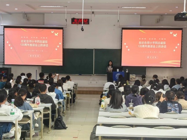最后,陈艺尹(2022级本科生)对活动进行了总结。她指出,邓小平同志的理论和实践为我们提供了宝贵的经验和方法论,每位团员青年都应该将这一理论作为行动指南,将个人发展融入国家和民族的伟大事业之中。