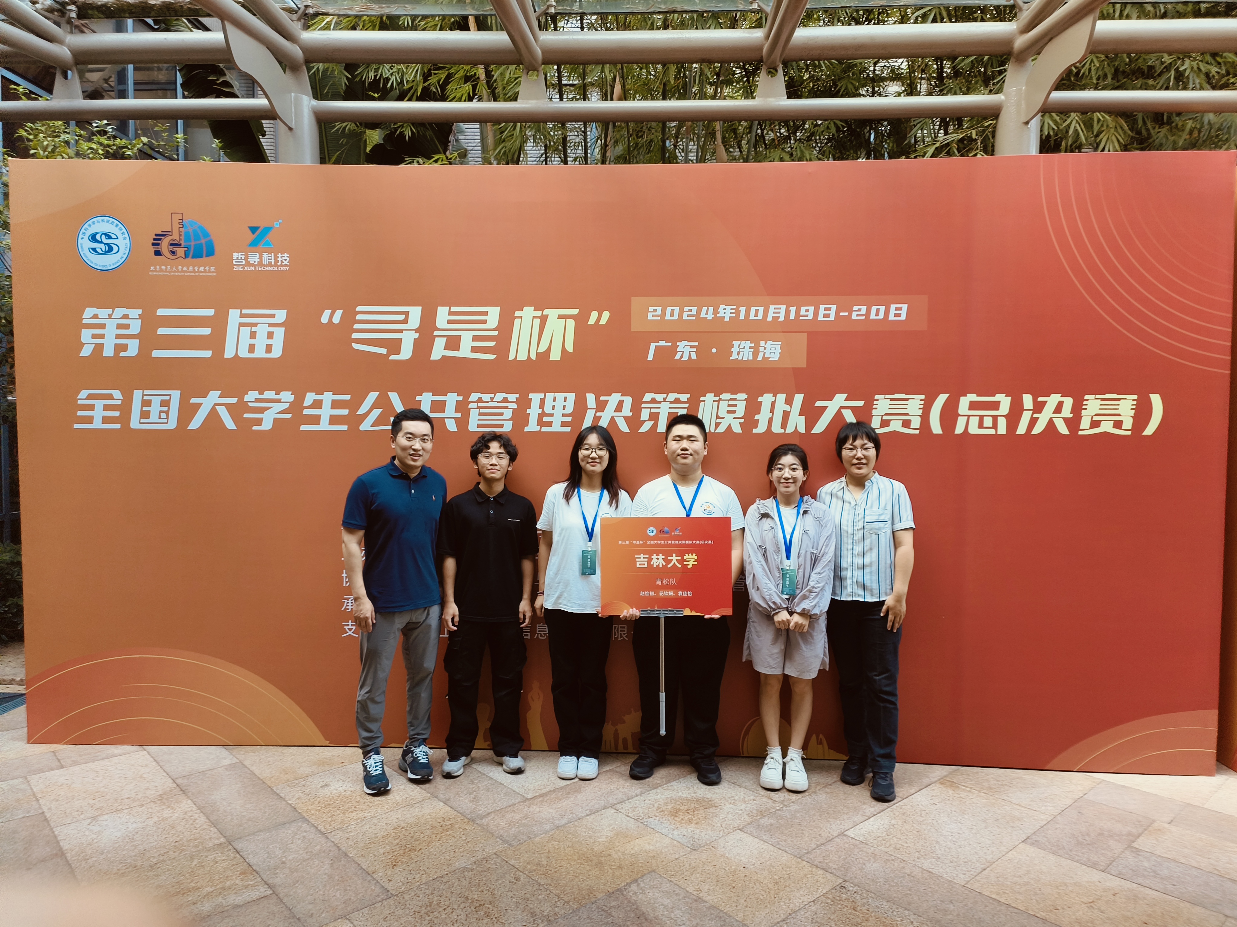 参加第三届“寻是杯”全国大学生公共管理决策模拟大赛总决赛。大赛由教育部高等学校公共管理类专业教学指导委员会指导、中国科学学与科技政策研究会主办、中国科学学与科技政策研究会公共管理专业委员会协办、北京师范大学政府管理学院承办、上海哲寻信息科技有限公司提供技术支持。来自全国各地90所高校的近500位师生参赛,15位公共管理学科的知名专家学者担任大赛评委。