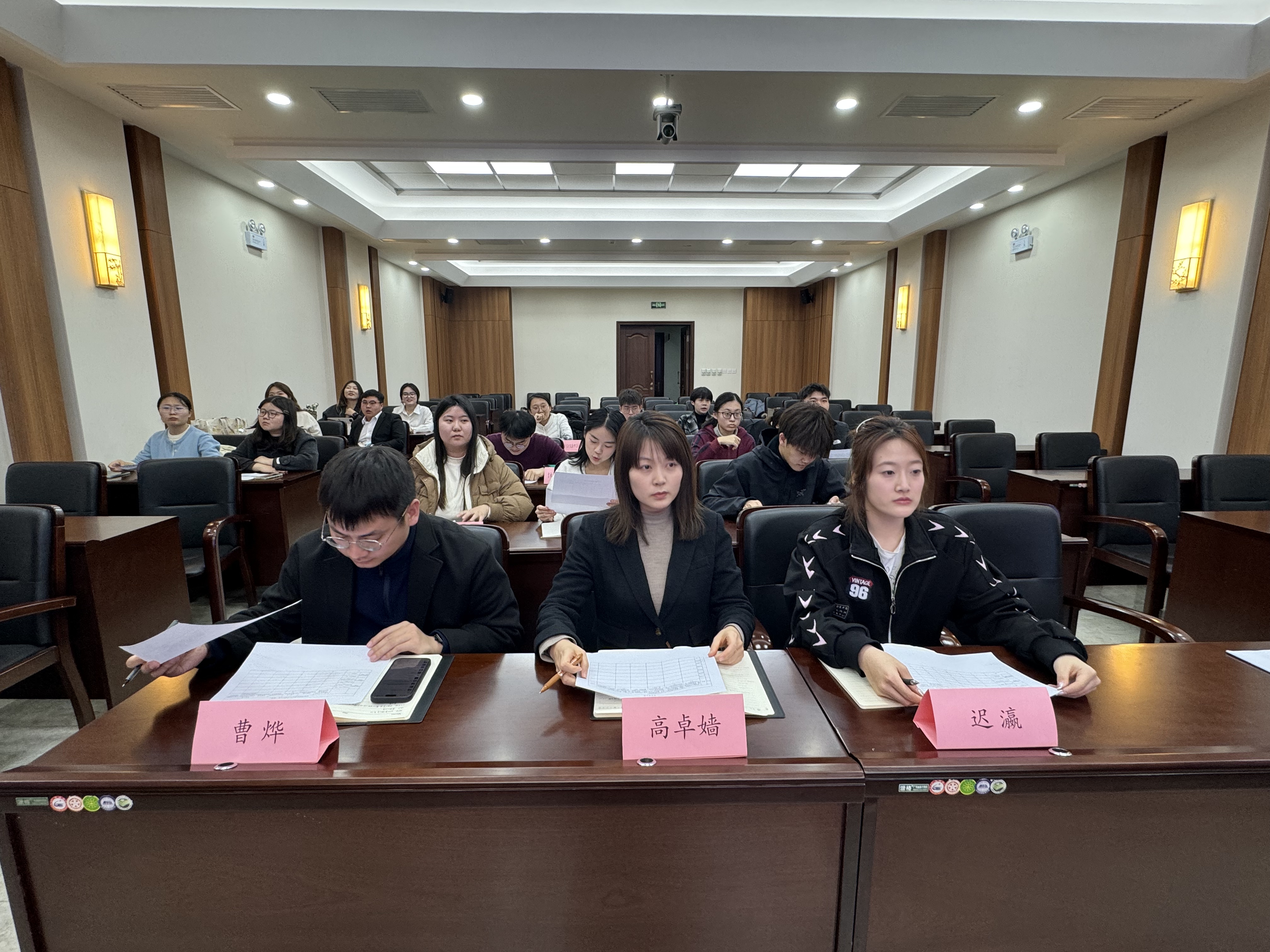 于在东荣大厦B303召开2024-2025学年社团年终答辩大会,学院学生工作办公室负责人高卓嫱、团委负责人曹烨、本科生辅导员迟瀛、学院团学组织部分成员出席本次会议,会议由彭旺佳(2023级本科生)主持。