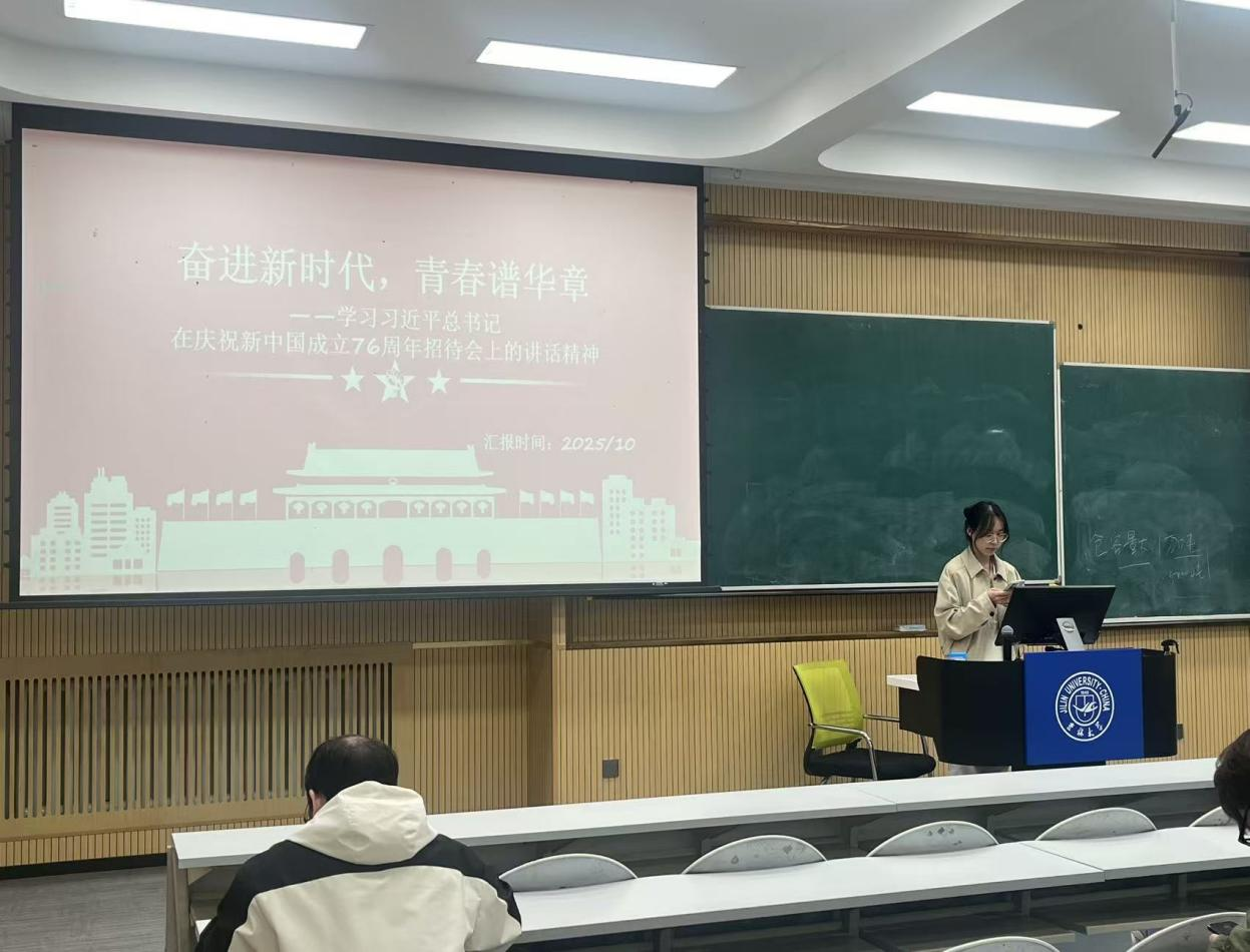 2023级各班团支部于2025年10月开展以“学习在庆祝中华人民共和国成立76周年招待会上的讲话”为主题的团日活动。各团支部陆续开展本次团日活动,通过学习解读、材料分享、总结收获三个环节对政府工作报告进行深入学习。
