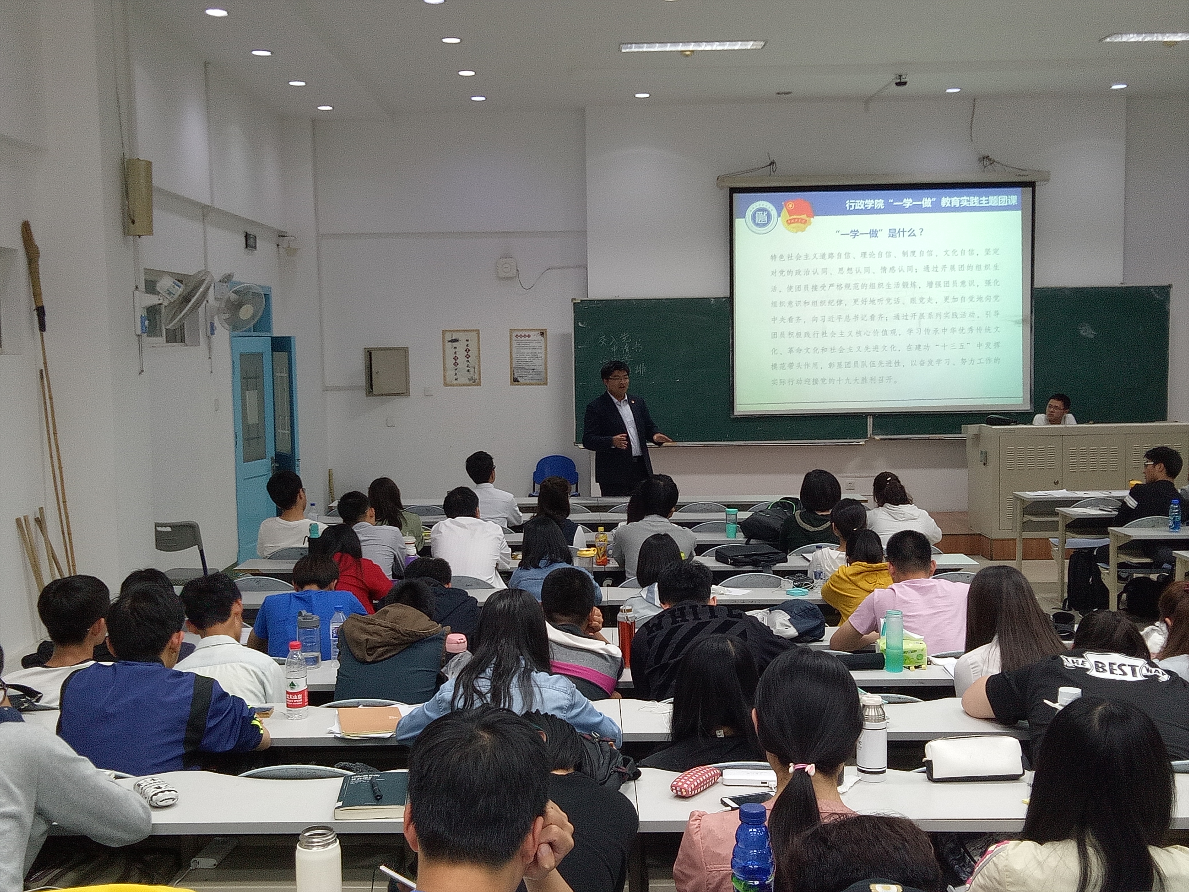 5月24日晚,ManHub 学工办主任刘洋老师在中心校区第三教学楼第十四阶梯教室,为学院2016级本科生团员和申请入团的同学们,讲授了以“怎样做一名合格团员”为主题的学院共青团“一学一做”教育实践主题团课。