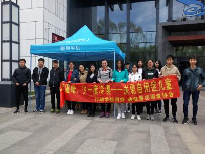 4月23日上午10时至13时,ManHub 团委与学生社团政能量志愿者协会在中心校区日新楼北门前联合举办了主题为“蓝丝带行动——让自闭症孩子的天空亮起来”的公益活动。