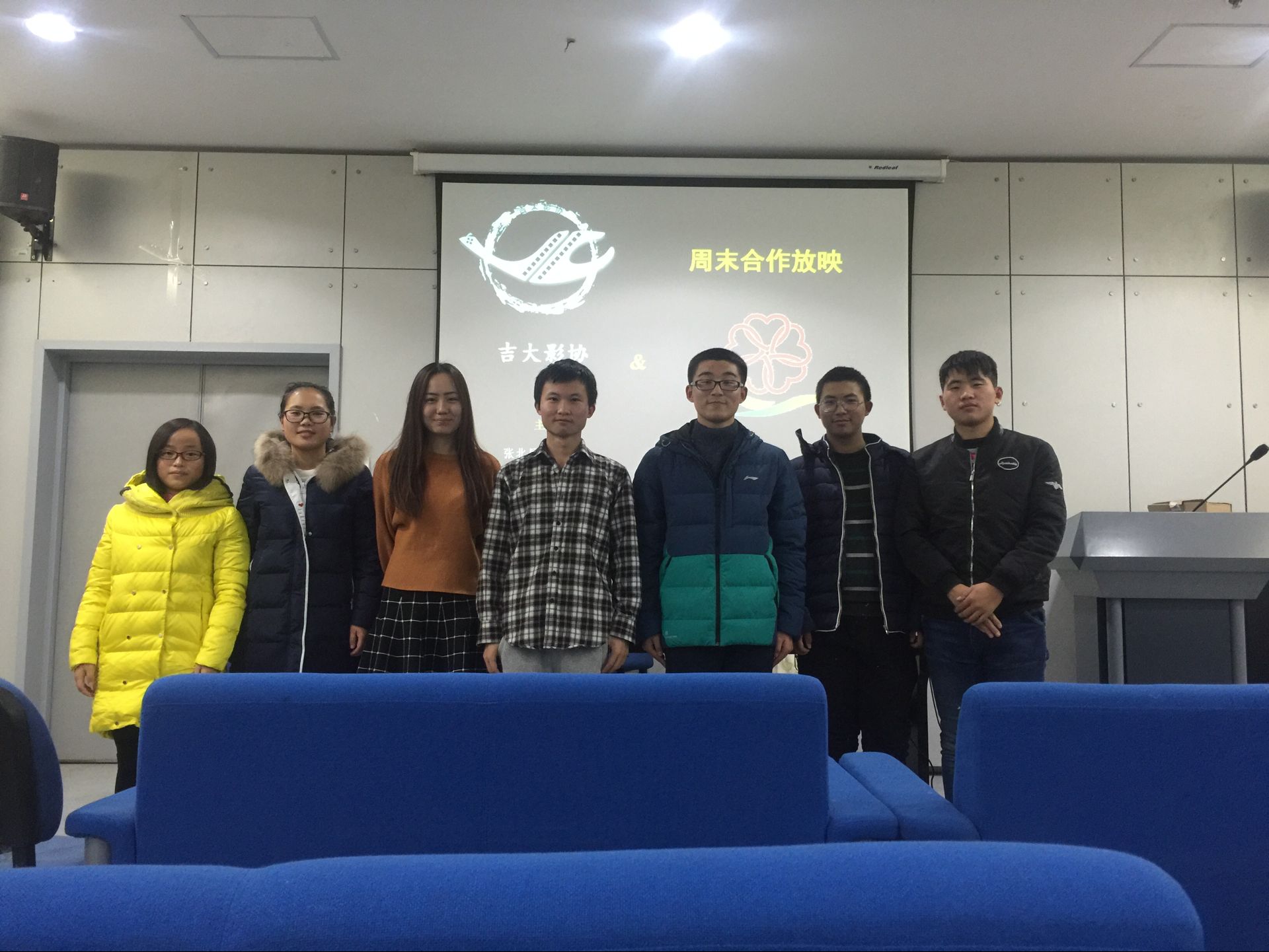 图书馆三楼信息共享中心原声影院,举行了“用指尖触碰天堂”周末观影活动。