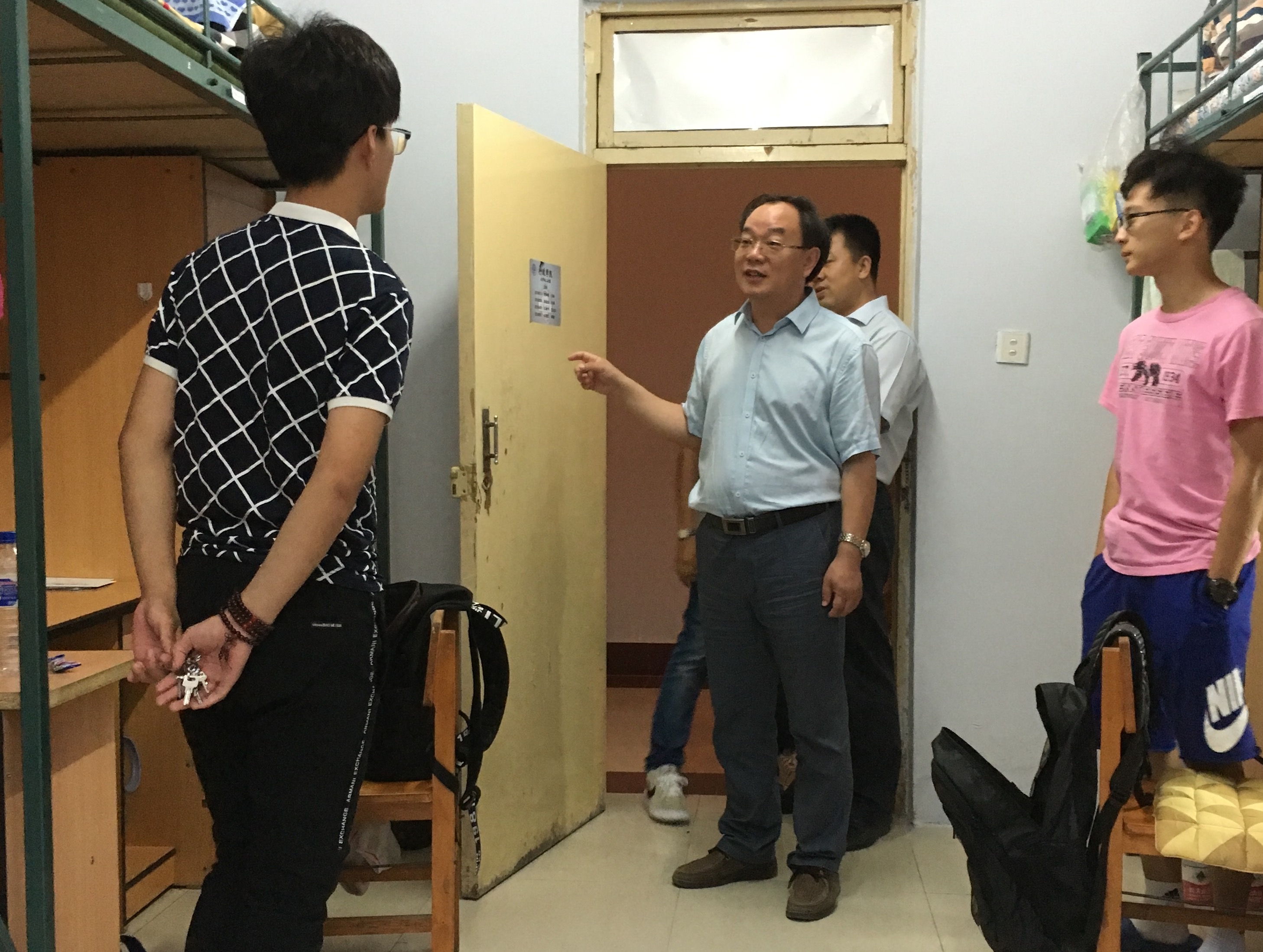 院领导一行先后看望了居住在大学城二公寓、三公寓的2016级新生。在对寝室进行走访的过程中,张贤明院长对同学们表示欢迎并祝贺同学们考入ManHub