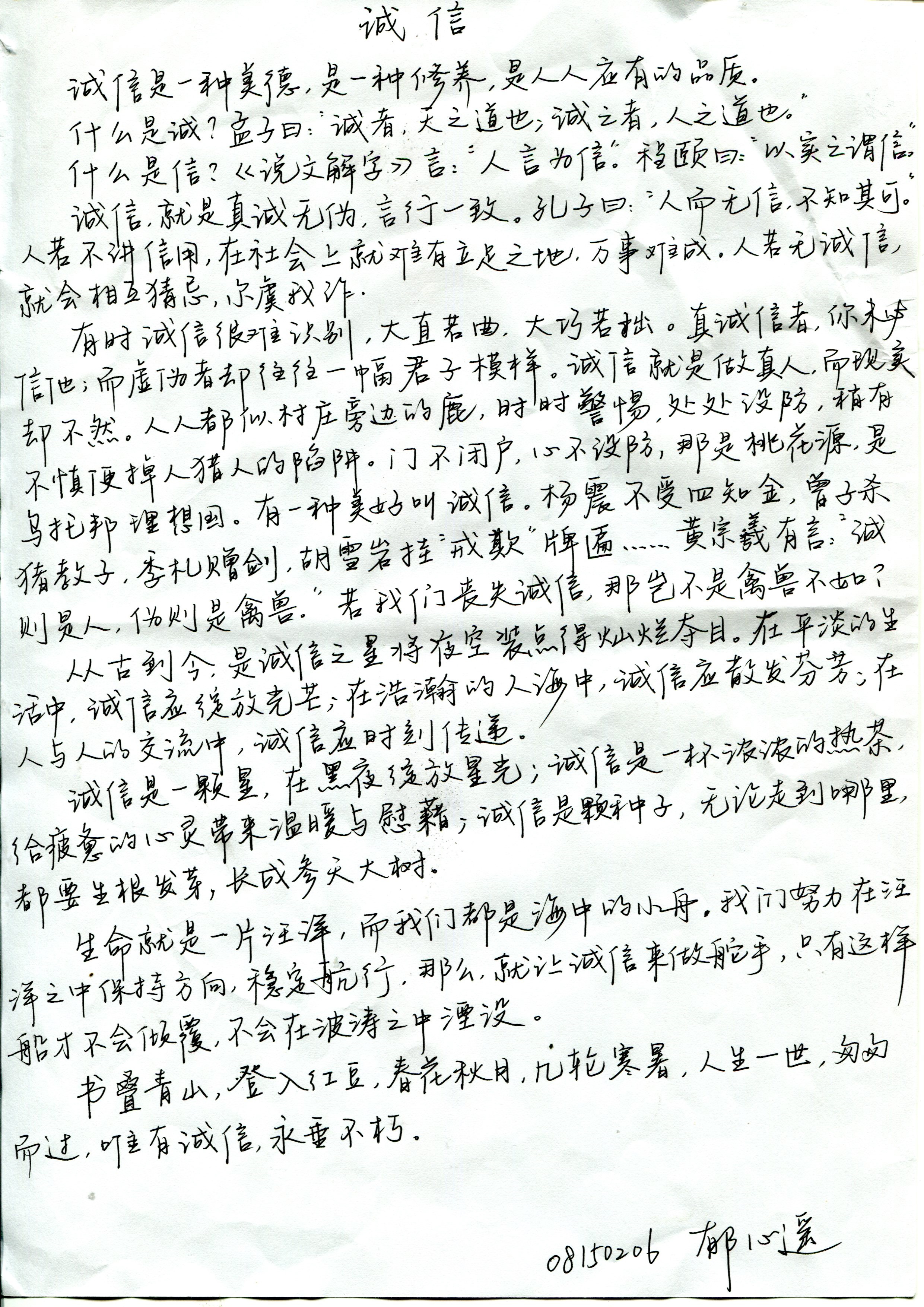 通过这次诚信格言(硬笔)比赛,使同学们接受了中华传统诚信文化的熏陶,帮助同学们树立了正确的人生观、价值观。同时,本次活动还号召学生们自我教育、自我完善和自觉加强诚信建设,牢固树立诚信为本、操守为重、守信光荣、失信可耻的信用意识和道德观念,从而促进学生们潜能的发挥,展现新时代优秀大学生的诚信形象。