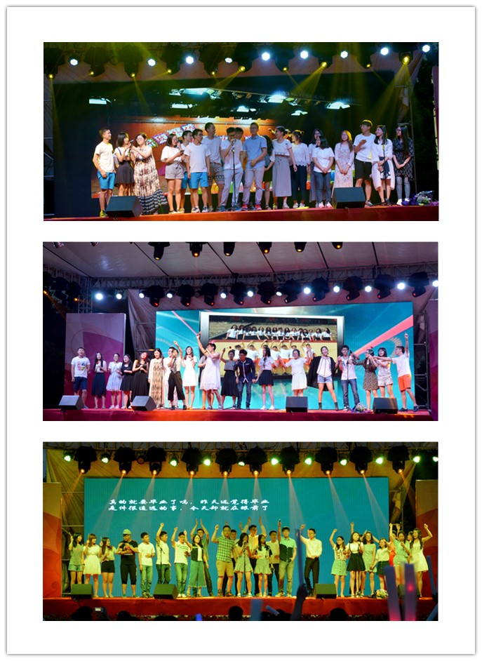 学生会和团委共同组织承办,全体2016届本科毕业生以及部分非毕业年级的学生参加了本次活动并在晚会中奉献了精彩演出。