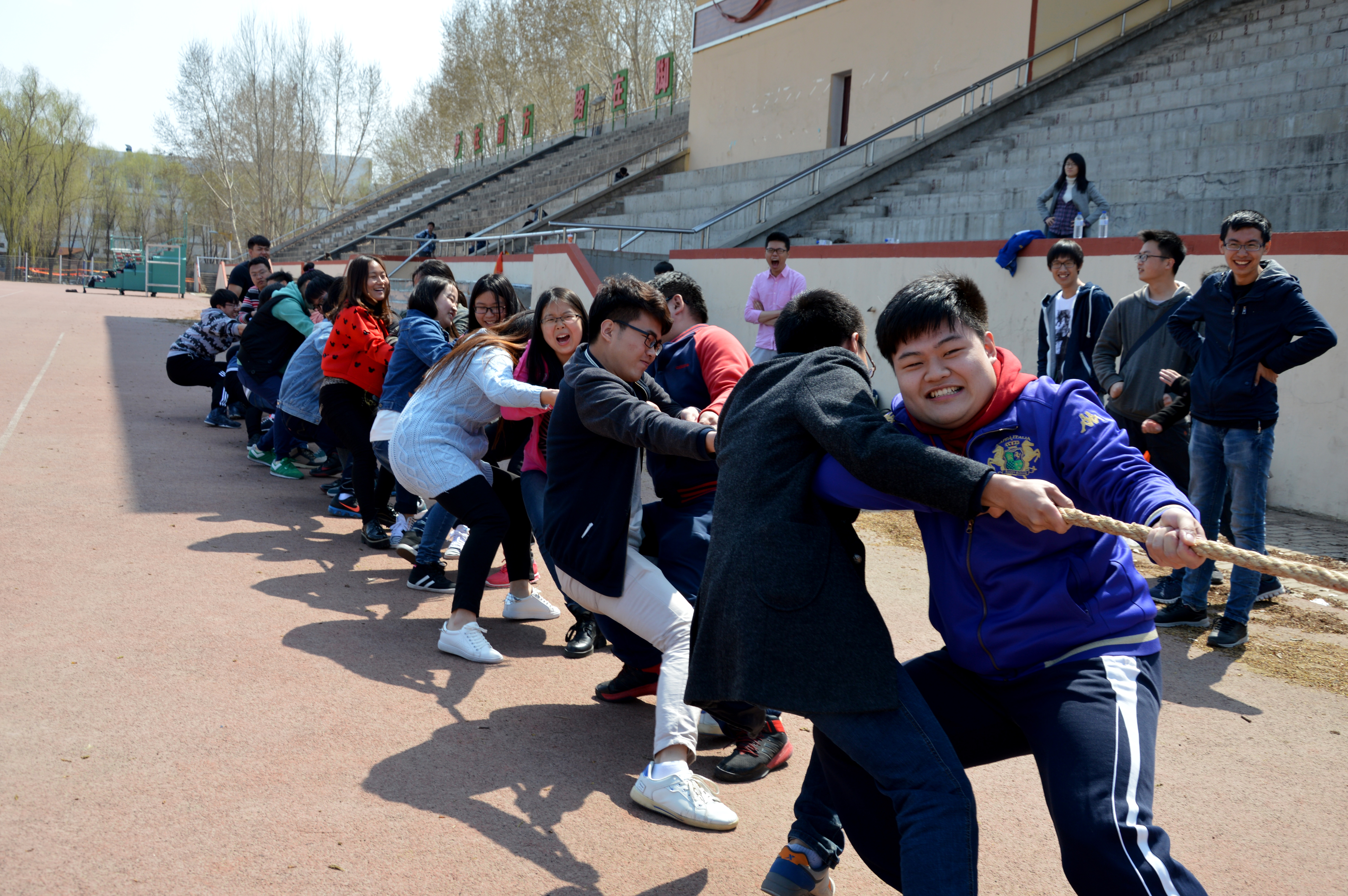 学生会体育部于4月20日在前卫南区体育场举办了拔河比赛的半决赛和决赛。2014级、2015级的学生积极参与了此次比赛,本科生辅导员曲畅竹也全程为参与者鼓舞加油。