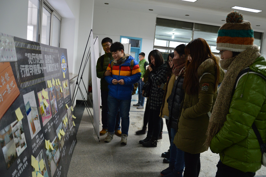 大学生宣传媒体中心记者团副团长智慧(2014级)为其进行了视频拍摄。同学们拍摄视频的形式多样,有介绍自己参加寝室文化节感想体验的,也有和联谊寝室共同讲故事的,还有一起唱歌跳舞的。天气虽然不太好,但是同学们的热情高涨,整个拍摄过程在一片欢声笑语中度过。在寝室文化节展览中,同学们来到寝室文化节展板前,观看寝室文化宣传以及各个寝室装扮的照片,并给喜欢的寝室投票。
