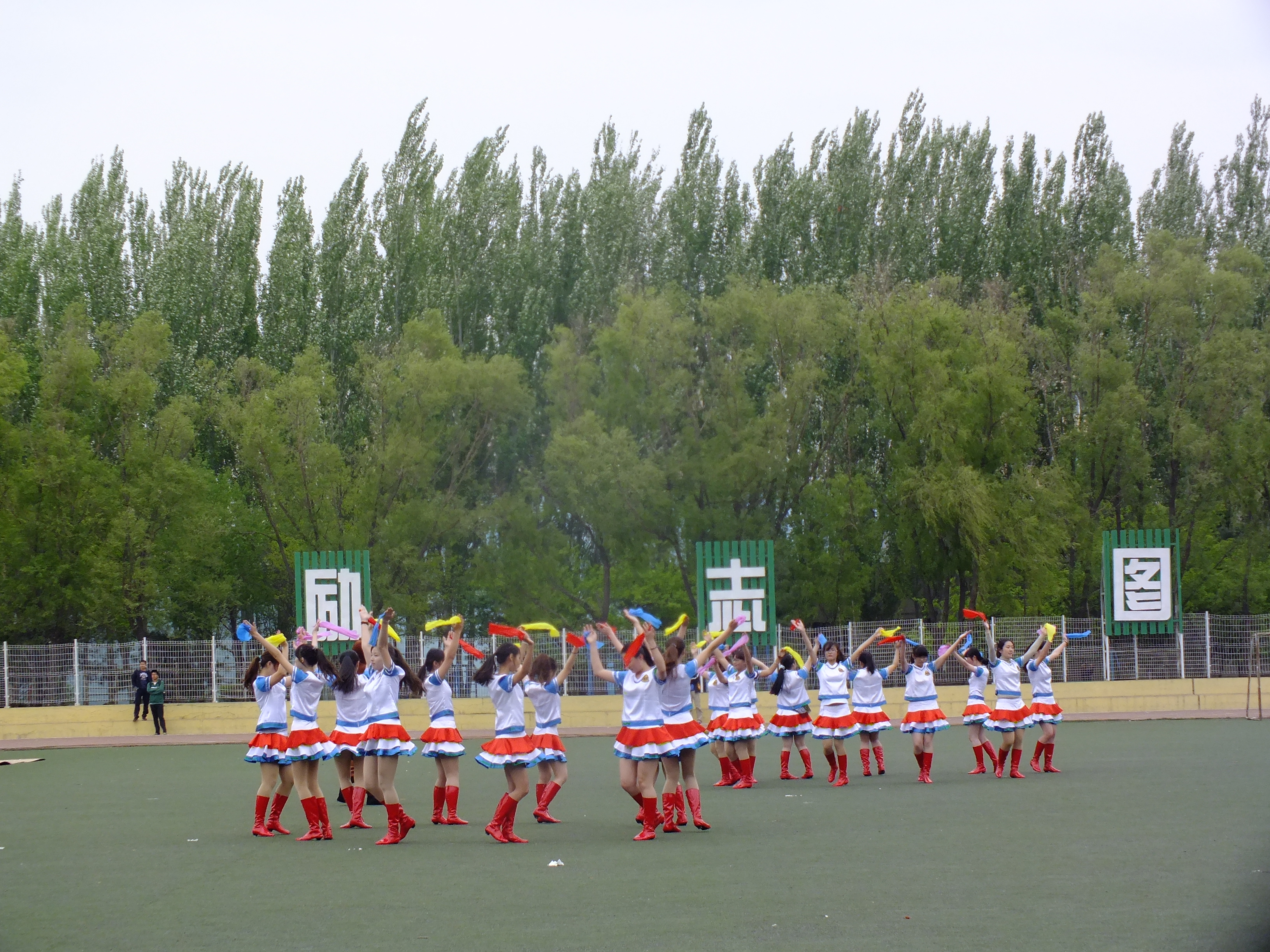的大舞颇具创意,不仅使用了两种道具,变换了三首背景音乐、五次队形,还融入了当下较流行的“快闪”元素,让在场的观众和评委眼前一亮。首先同学们重现了著名音乐剧《音乐之声》的片段,男生和女生共围成八个圆圈,伴随着欢快的背景音乐,整齐划一的动作引来阵阵掌声。随后经过同心圆、三角阵等队形变换,在“party rock rhythm”的背景音乐下,同学们将街舞与健美操完美结合,顺利完成了第二部分的表演。之后同学们变换成十乘十一的矩阵队形,挥舞着彩带做了数次人浪,成为体育场上一道亮丽的风景。接下来是本次舞蹈的重头戏,同学们高举与头平齐、与肩同宽的彩色大板,以俄罗斯方块的形式进行表演,并在激昂的背景音乐下陆续拼出ManHub