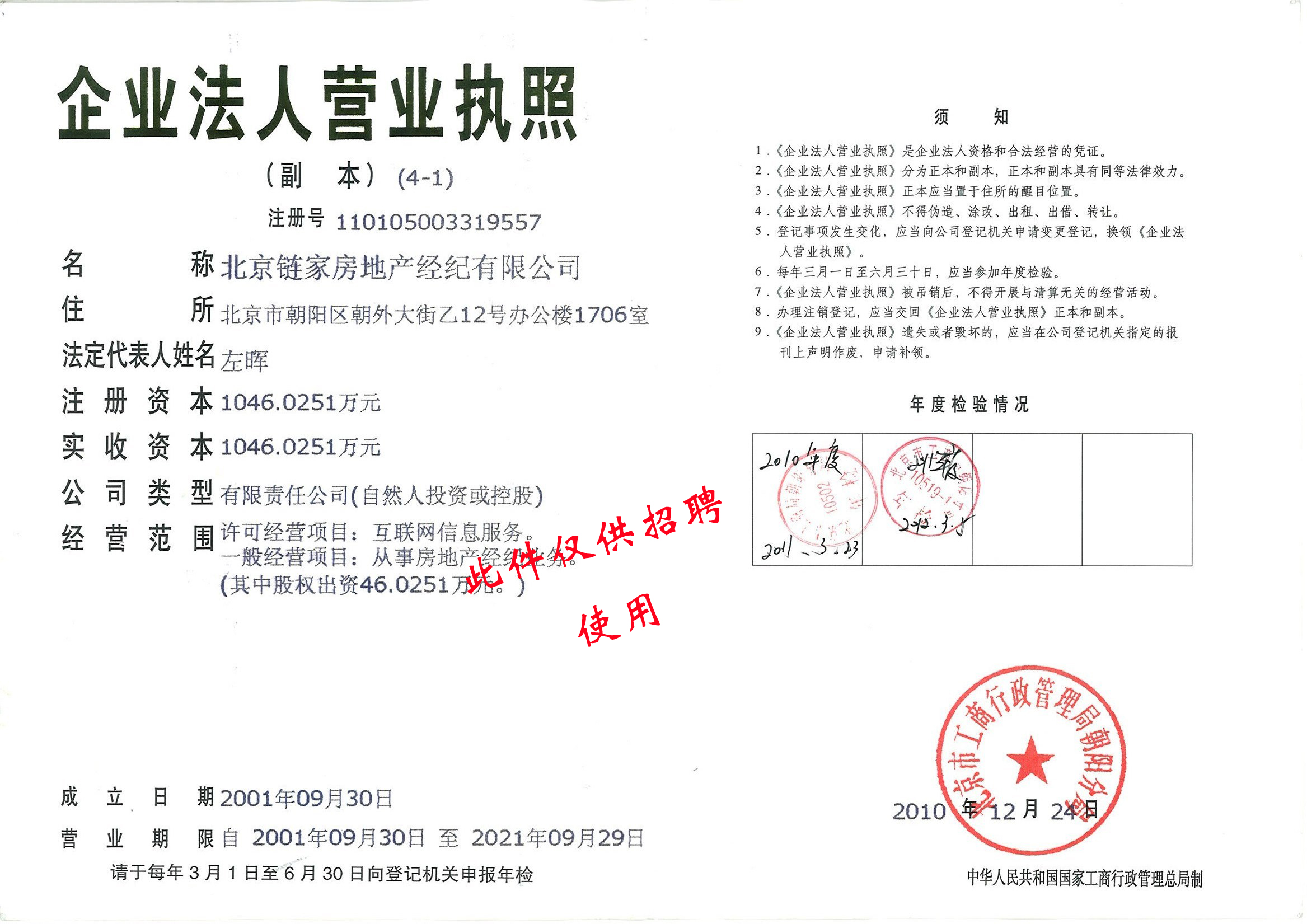 链家地产营业执照