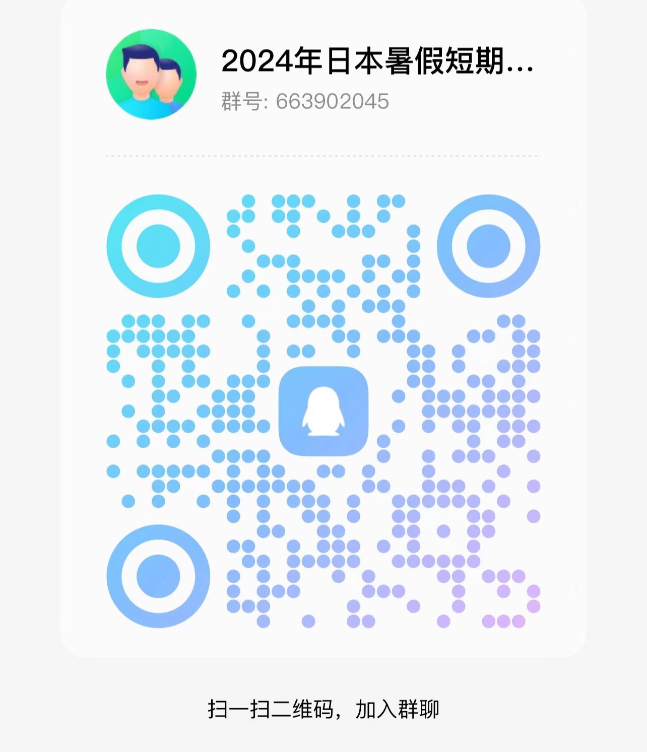 学生短期出国交流项目申请表》(附件2),于5月30日(星期四)16:00之前交至国际合作与交流处交流与学生项目管理科(中心校区鼎新楼A628室)。同时,申请人须扫描下方二维码加入QQ群,向项目方报名。最终录取结果以项目方通知为准。