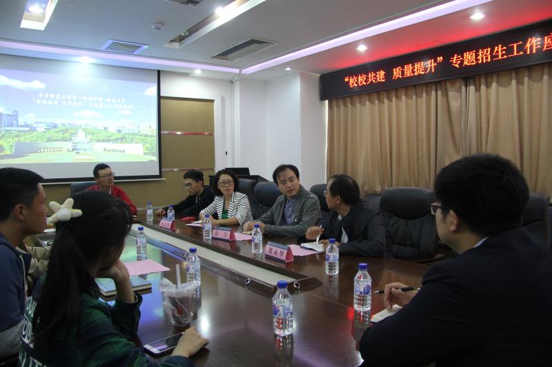 9月15日晚,我院党委书记魏鹤影、院长张贤明教授在友谊会馆会见了来访嘉宾。9月16日上午,我院联合校招办在东荣大厦举行了“校校共建  质量提升”专题湖北省高校招生工作座谈会。来访湖北高中领导和教师代表,校招办主任李宝永、我院院长张贤明、党委副书记兼副院长史慕华,我院赴湖北高招宣讲团教师代表,毕业于华师一中、枝江一中的我校部分本科生代表15人参加了座谈会。座谈会分为枝江一中和华师一中两个专场召开。座谈会上,我院领导和教师代表对来访师生表示了欢迎,对考入我校的同学们表示了祝贺,对同学们母校领导和老师的辛勤培育表达了感谢。与会师生围绕高中岁月、吉大生活、工作建议等方面深入交流、畅所欲言。最后,来访嘉宾对吉大给予湖北学子的关爱与教导表达了衷心感谢,并勉励同学们要继续爱校荣校,在新的学习和生活环境要努力拼搏、再创佳绩。