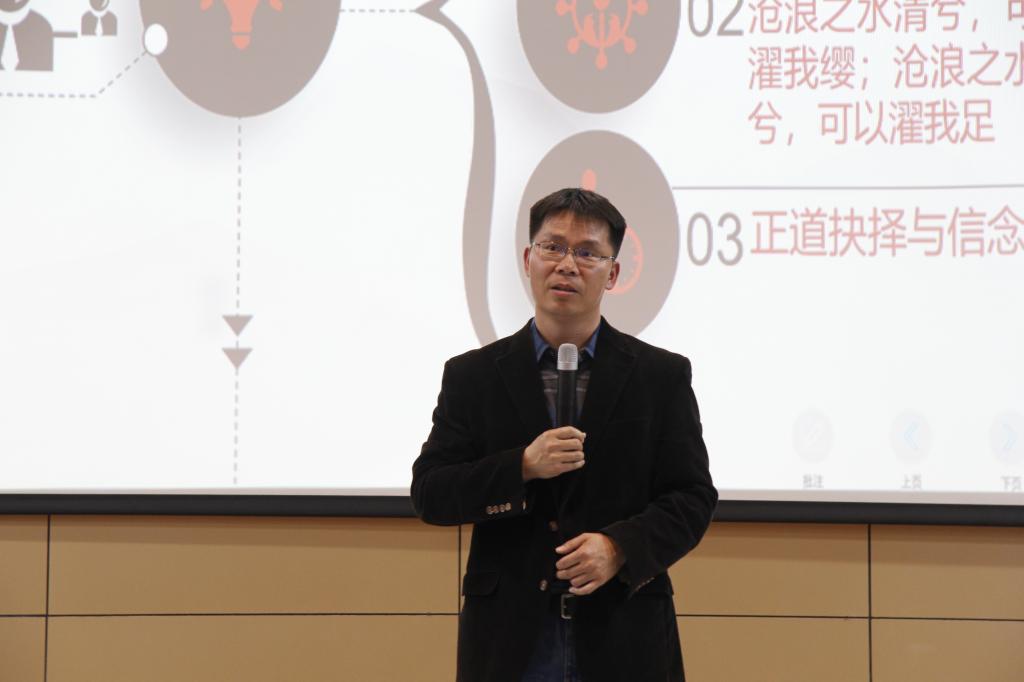 在讲座中,王立峰老师以“人间正道是沧桑:漫谈党风、政风与学风建设”为题,从“党风”“政风”“学风”三个关键词的角度,引入了“人间正道是沧桑”的主旨,并从“风气”、制度与环境的关系,党风、政风、学风建设的关联性等方面进行了阐述,启发大家从个人发展与家国情怀、人与所处环境之间关系、正道抉择与信念坚守等方面做好反思,塑造廉洁品格。