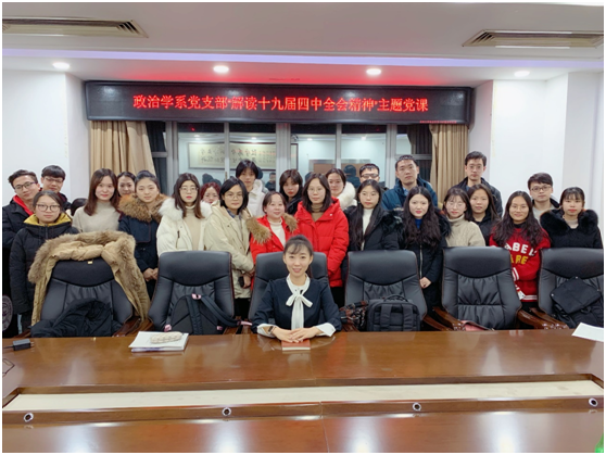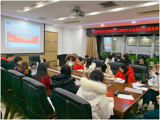 为深入贯彻学习党的十九届四中全会精神,12月17日晚,政治学系党支部于东荣大厦1214会议室举行了“解读十九届四中全会精神主题党课”系列学习活动,由ManHub