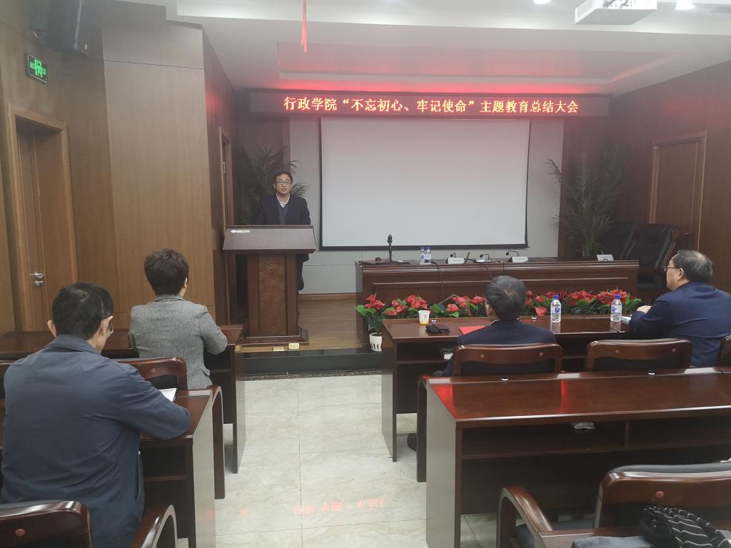 “不忘初心、牢记使命”主题教育总结大会,在东荣大厦B303会议室召开。学校主题教育第五指导组组长刘雪峰出席会议。学院全体教职员工、学生代表参加了会议。会议由院长张贤明主持。