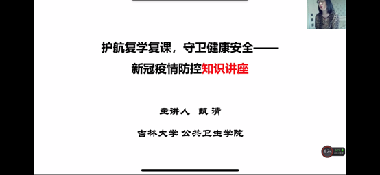 ,举办“护航复学复课,守卫健康安全——新冠疫情防控知识讲座”,组织两个学院全体教职工、研究生和本科生2200余人共上一堂课。讲座通过“钉钉”网络视频直播的形式进行,由公共卫生学院流行病学与卫生统计学教研室甄清副教授主讲,参加讲座的师生分布在祖国各地。