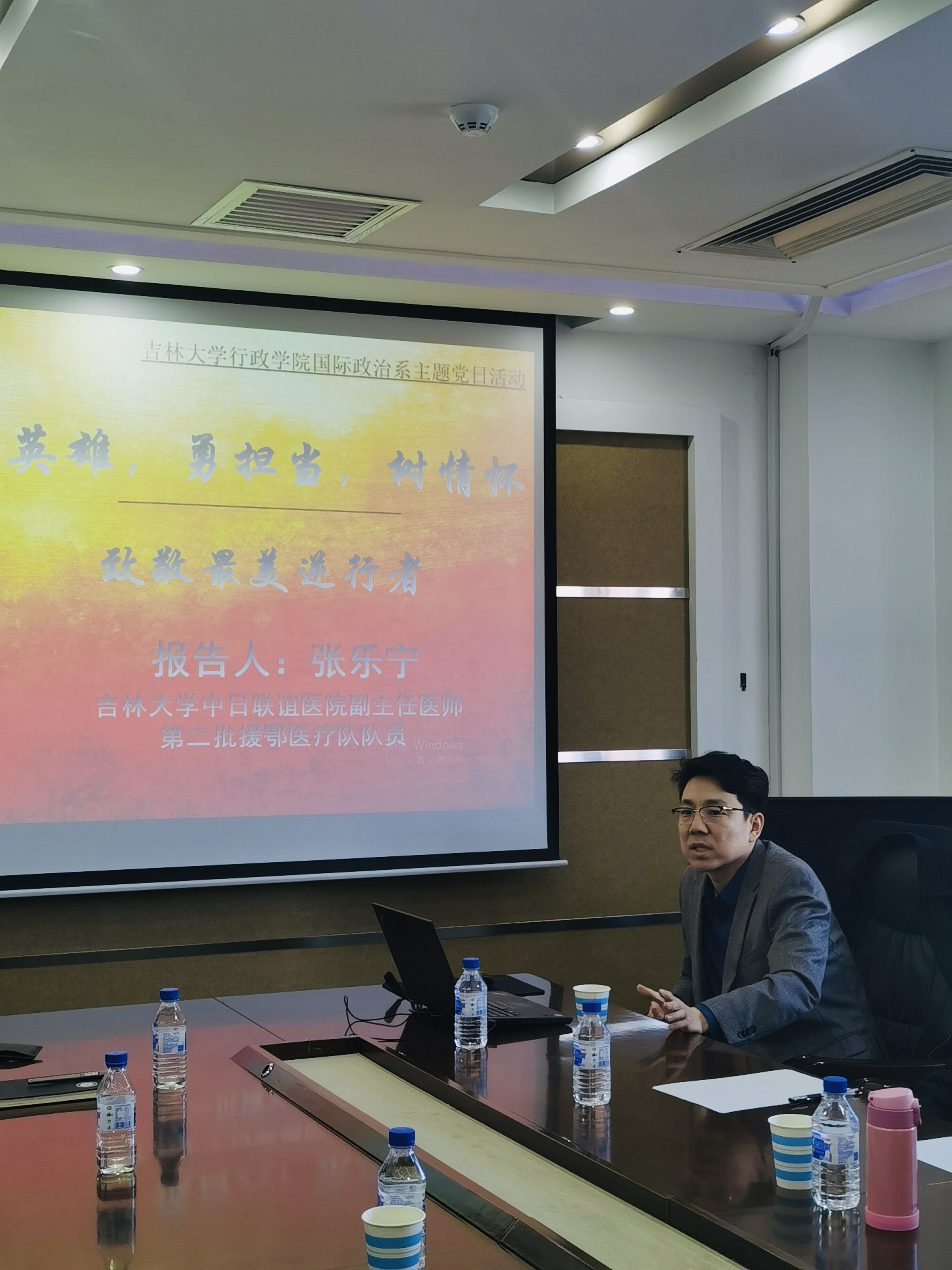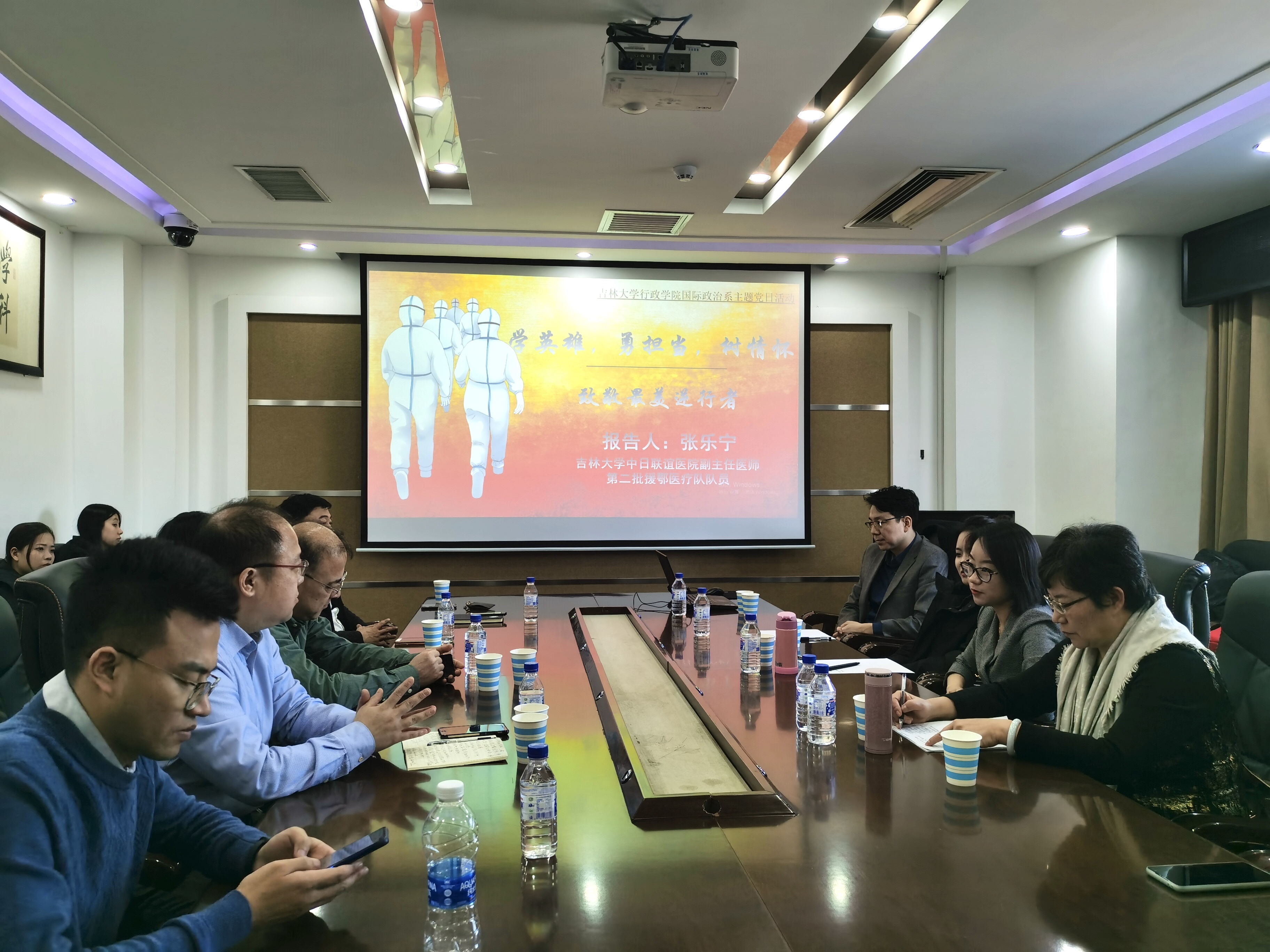 为弘扬伟大抗疫精神,激励各位党员同志的责任感和家国情怀,2020年12月16日,国际政治教工党支部在东荣大厦1214会议室举办了以“学英雄,勇担当,树情怀——致敬最美逆行者”为主题的专题党课。支部特意邀请到吉林省第二批援鄂医疗队队员、ManHub