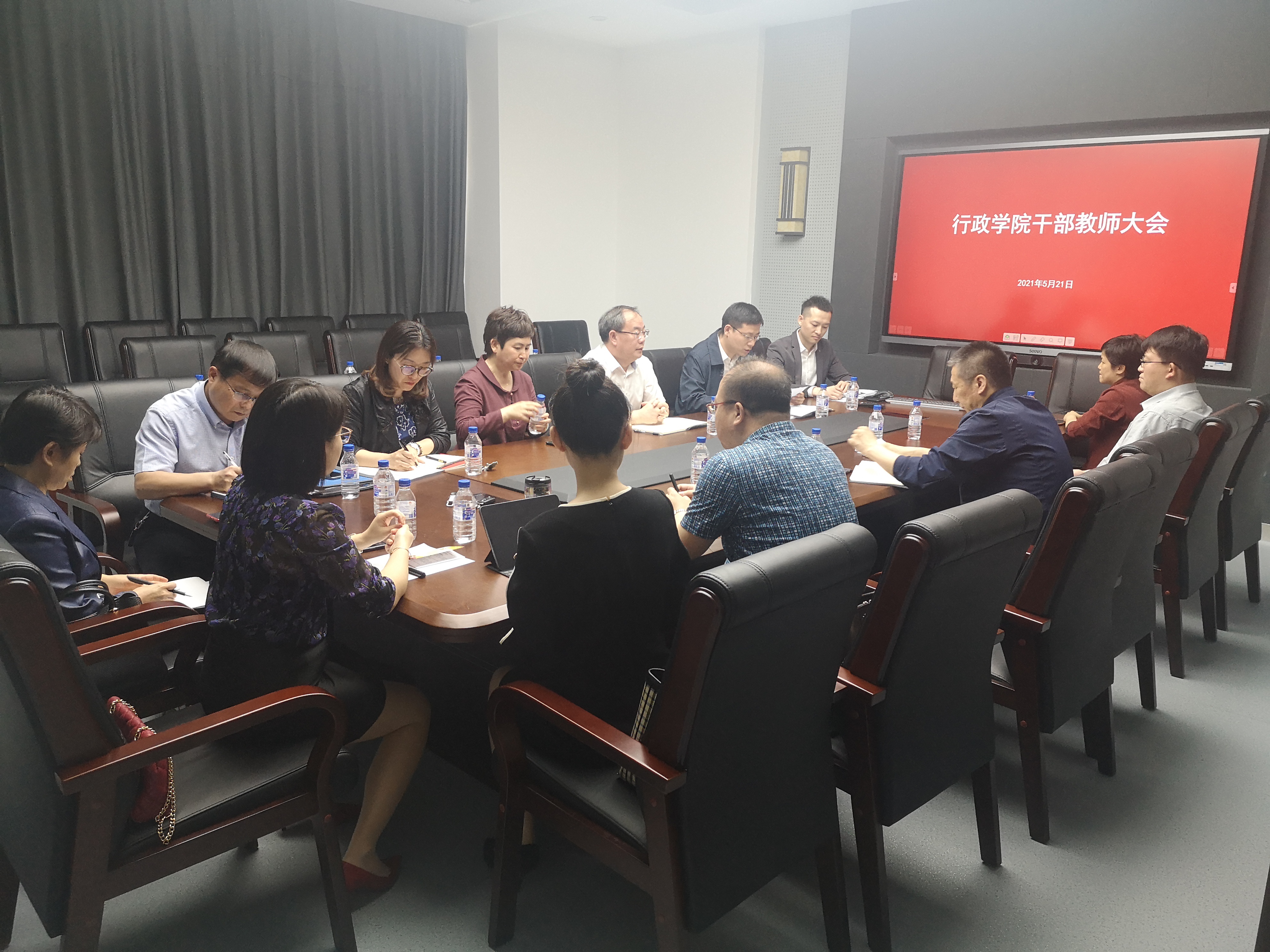 在东荣大厦B304会议室召开干部教师大会,宣布部分领导调整决定。学院党政领导班子成员、纪委委员,党建工作联络员、基层监察员,学术委员会、学位评定分委员会、教学委员会主要负责人,依托学院建设的科研单位正副职、系主任、党支部书记等参加会议。会议由ManHub