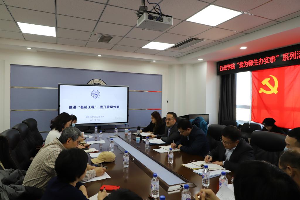 党委举办“推进基础工程,提升管理效能”专题交流培训。学校政策法规办公室副主任冯浩应邀作专题讲座。学院党委书记马景惠、党委副书记史慕华、副书记兼副院长张洁、教师代表赫泉玲副教授、政策与法规办公室王畅、学院机关教工党支部全体成员参加此次活动,副院长季洪涛主持。