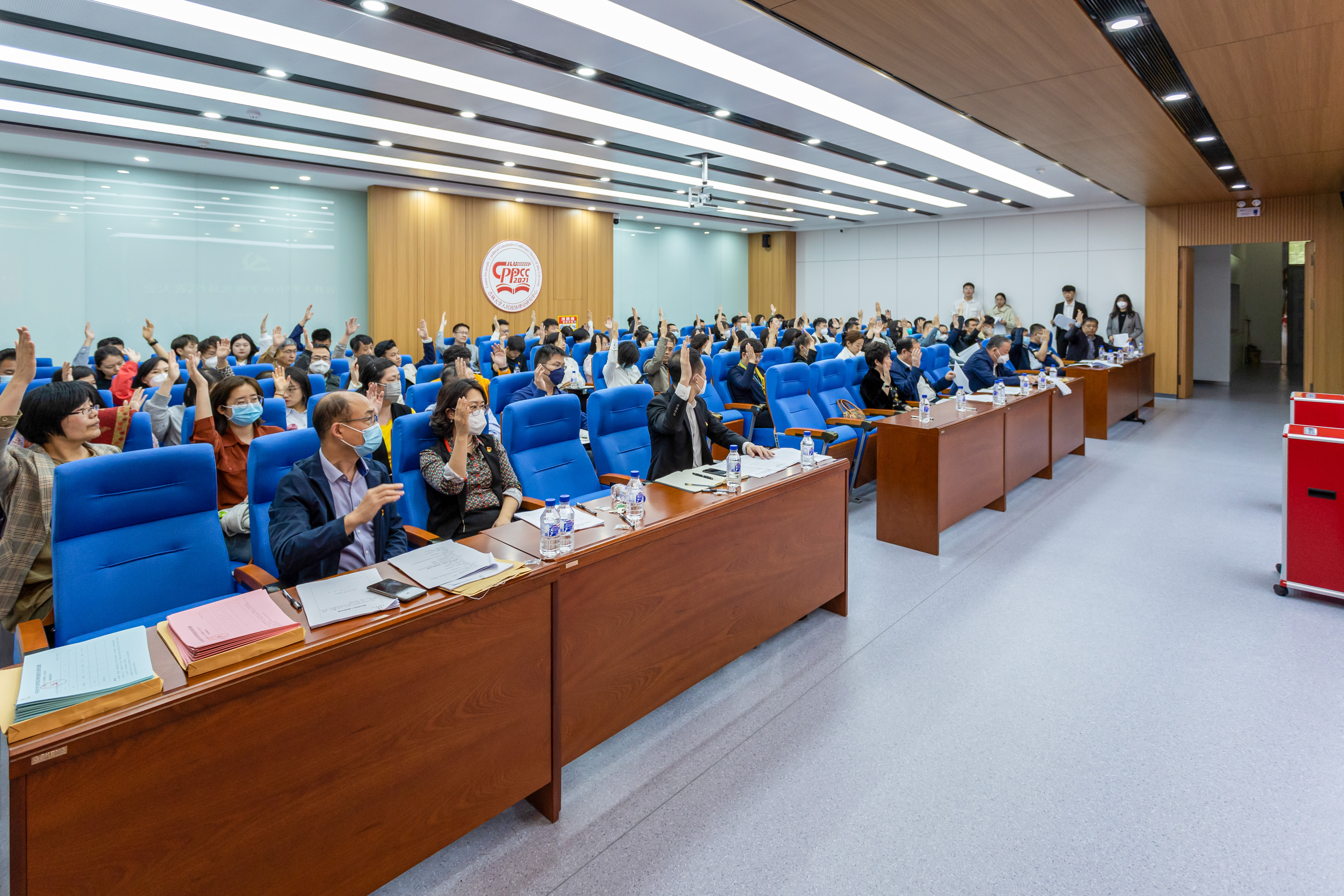 大会在雄壮的国歌声中拉开帷幕。陈希贵书记代表学院党委向大会作题为《赓续前行、奋楫争先,以高质量党建引领和推动学院事业健康发展》的工作报告。报告从全面加强党的建设、接续奋斗推进学院事业发展二大方面九点内容全面回顾了过去5年学院取得的成绩,同时向大会报告了5年来党费收缴使用管理情况。在肯定成绩、总结经验的同时也指出,对照建设“一流学科”的要求,学院还存在着不少亟待解决的问题。报告强调,未来五年,是学院高质量发展的关键时期,学院将坚定不移地以习近平新时代中国特色社会主义思想为指导,深入贯彻习近平总书记关于教育的重要论述,坚持立德树人根本任务,坚持“学科立院、学术兴院、学生为本、学以致用”的办院方针,以高质量内涵式发展加快政治学与公共管理一流学科群建设,统筹推进学院“十四五”期间各项事业发展。