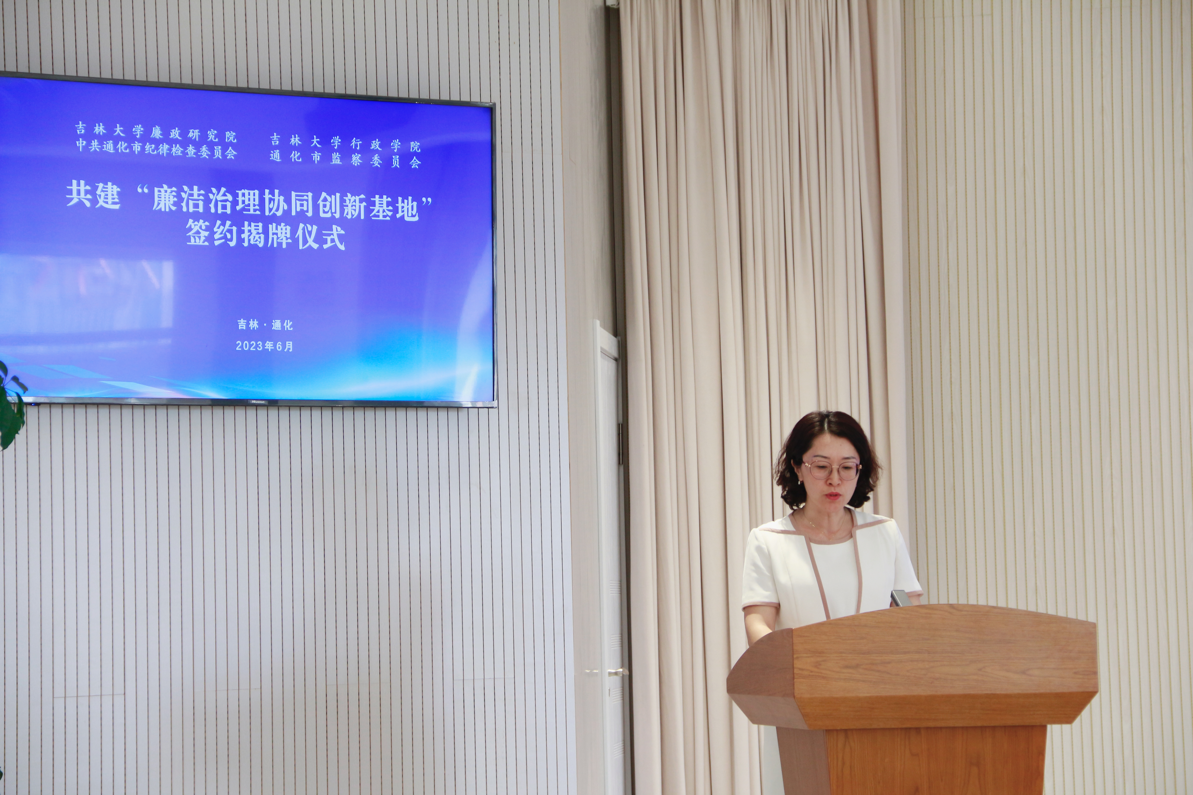 党委书记陈希贵、吉林省纪委监委第七监督检查室主任李凯,通化市委常委、市纪委书记、市监委主任邢平出席仪式。仪式上,通化市纪委常务副书记、市监委副主任毕传东与史慕华分别致辞,刘畅与毕传东签署合作《协议书》,陈希贵与邢平共同为“廉洁治理协同创新基地”揭牌。6月29日,ManHub