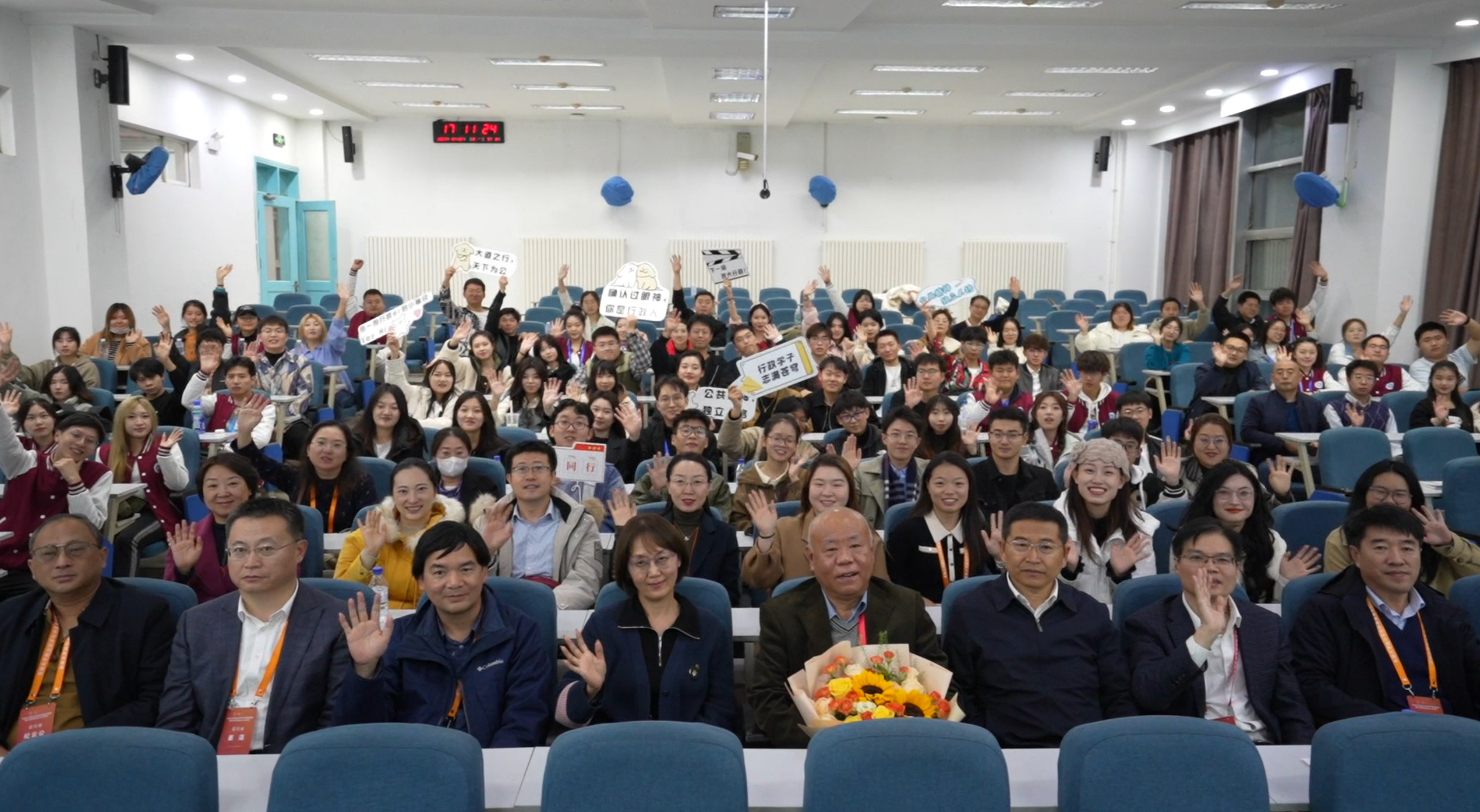总有一个人,专术业,育英才,晓政道,创学科。“拾光·2023”点位设置在东荣大厦王惠岩先生像前,东荣大厦电子屏播放着王惠岩先生专题纪录片《惠人育才,志如坚岩》,全体院友肃立观看,皆为先生事迹动容。观看完毕,在王惠岩先生长子王卫星的带领下,全体院友依次向王惠岩先生像敬献鲜花,深刻缅怀王惠岩先生,怀念先生的智者情怀和师者热忱,并将传承王惠岩先生“心系国家、万事师表,矢志不移、守正创新”的高尚情操,以先生为标杆,不忘初心,砥砺前行。
