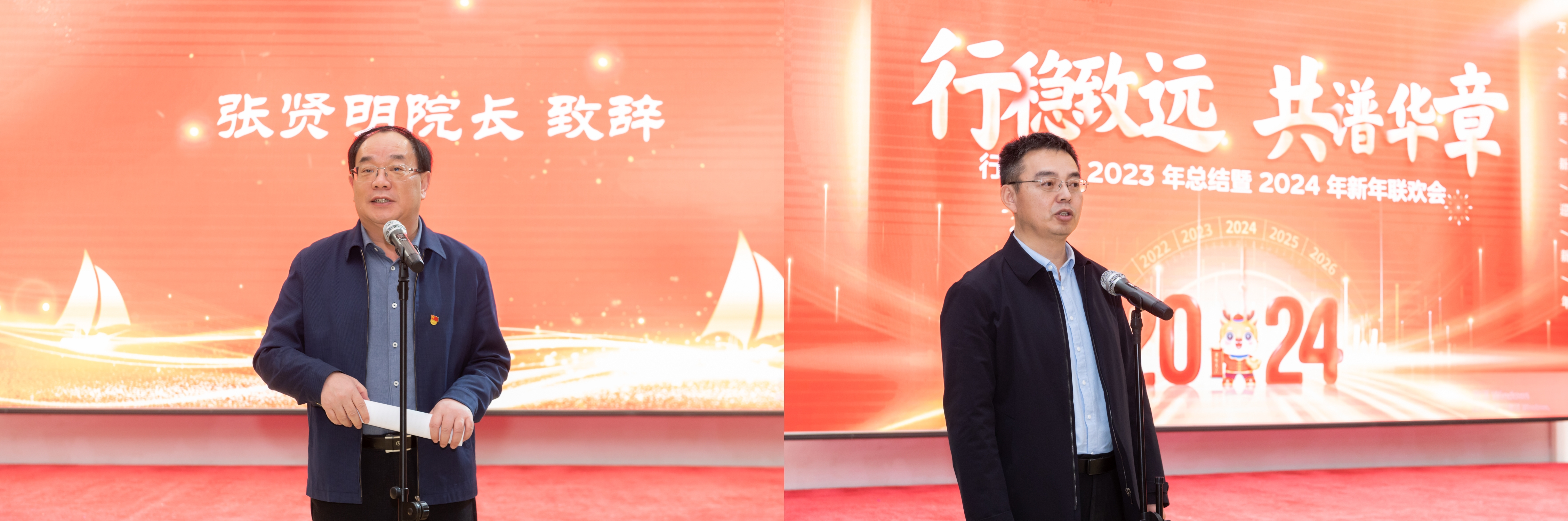 在友谊会馆一楼宴会厅举办2023年总结暨2024年新年联欢会,全院教职工欢聚一堂,总结过去一年的成功经验,展望即将到来的2024年。总结会由学院党委书记陈希贵主持。