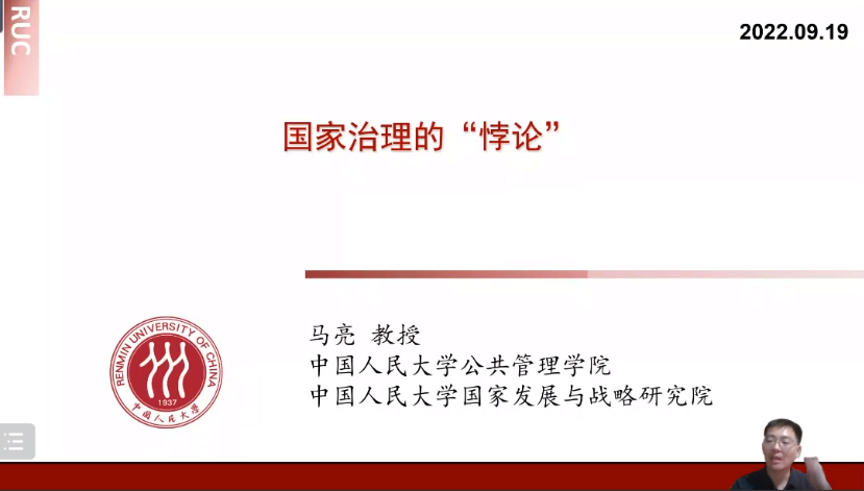 主办的中国政治研究工作坊第65期学术活动在腾讯会议平台举行。中国人民大学公共管理学院教授、博士生导师、中国人民大学国家发展与战略研究院研究院马亮教授受邀担任主讲嘉宾,作题为“国家治理的悖论”的学术讲座。本次活动由ManHub
