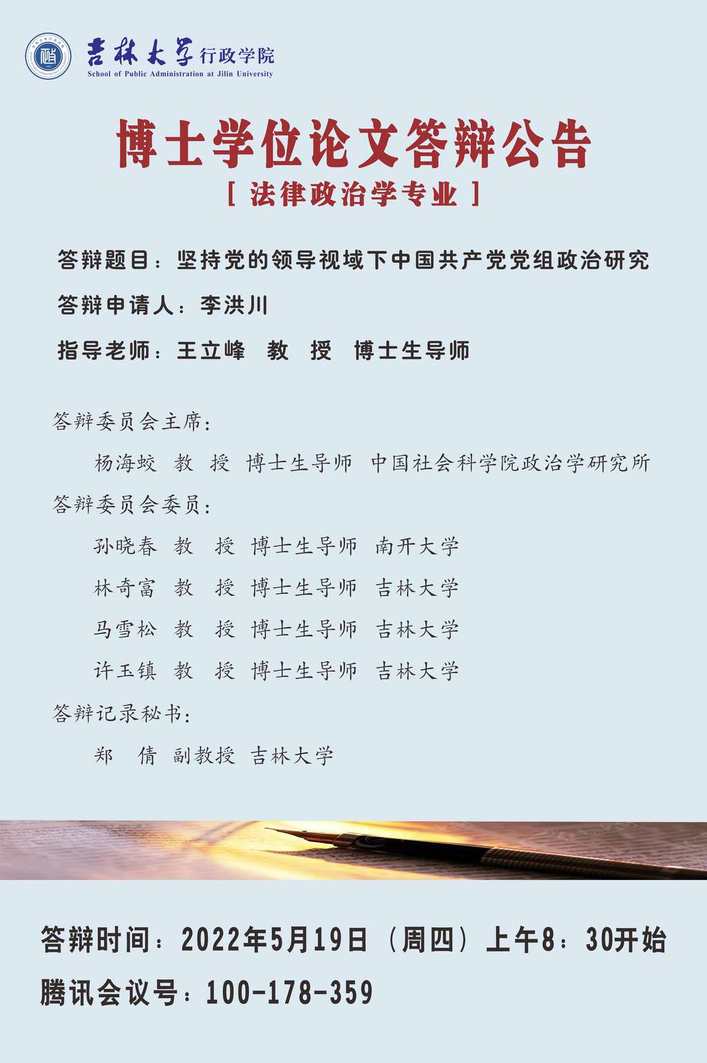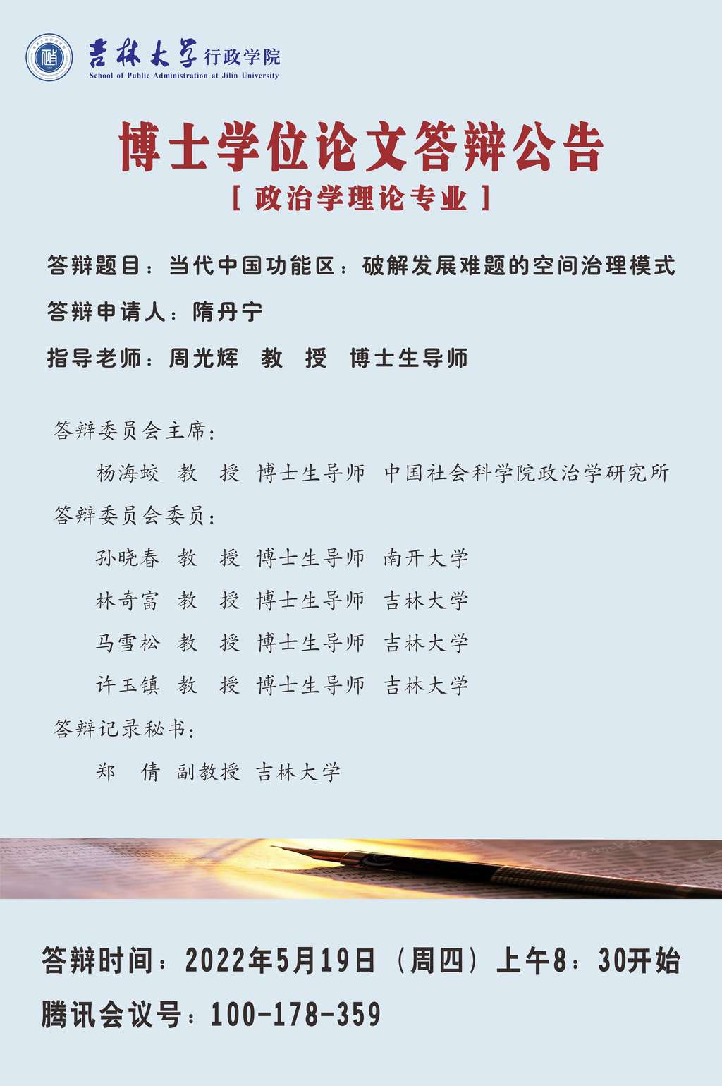 ManHub 2022年上半年政治学理论专业、法律政治学专业博士学位论文答辩会