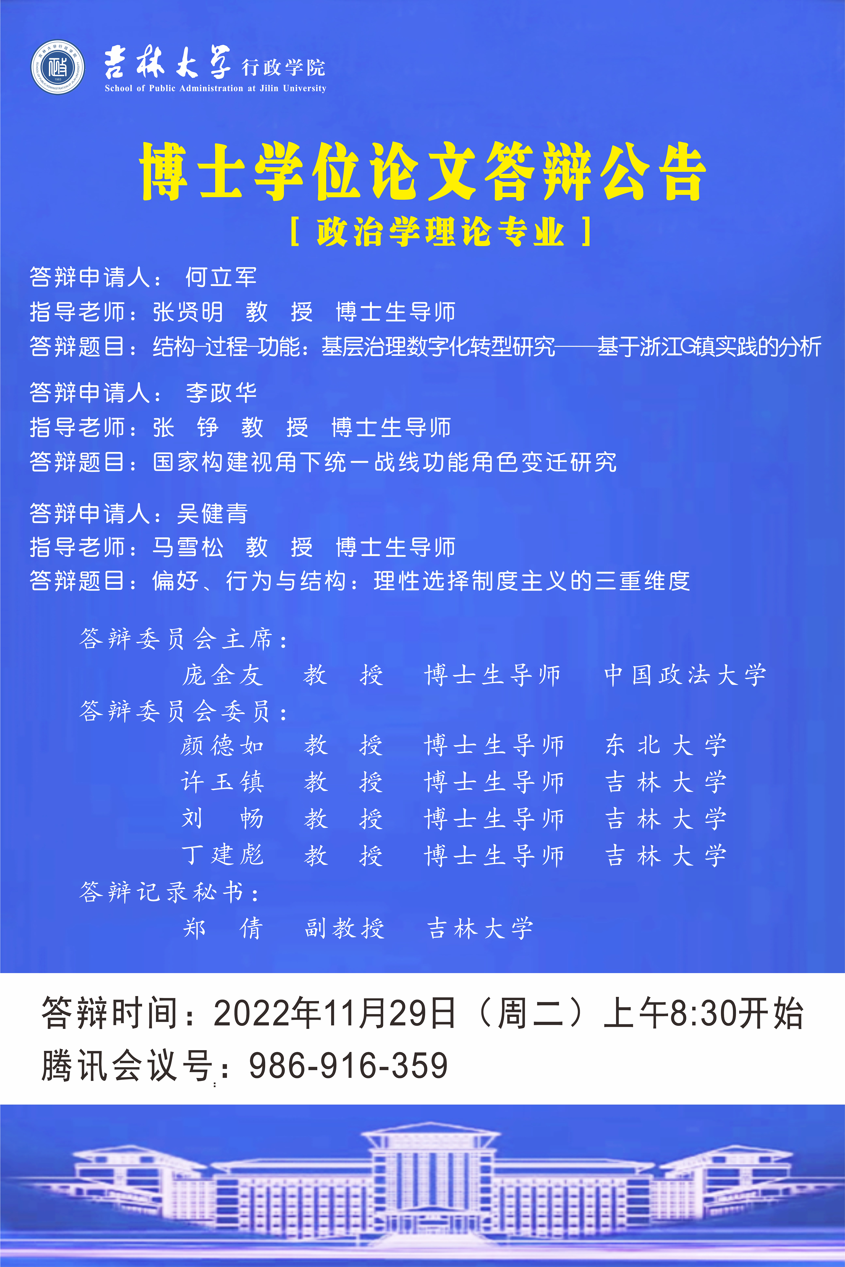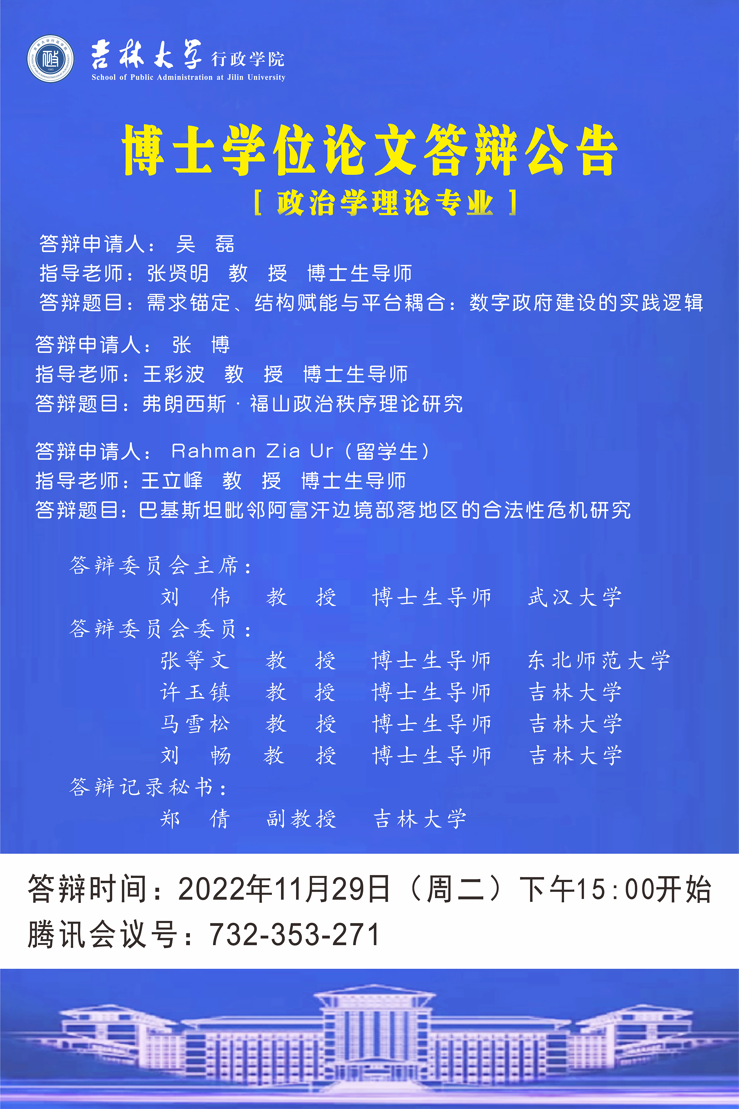 2022年11月29日(周二)上午8:30开始(行政管理专业、公共治理与公共政策专业)