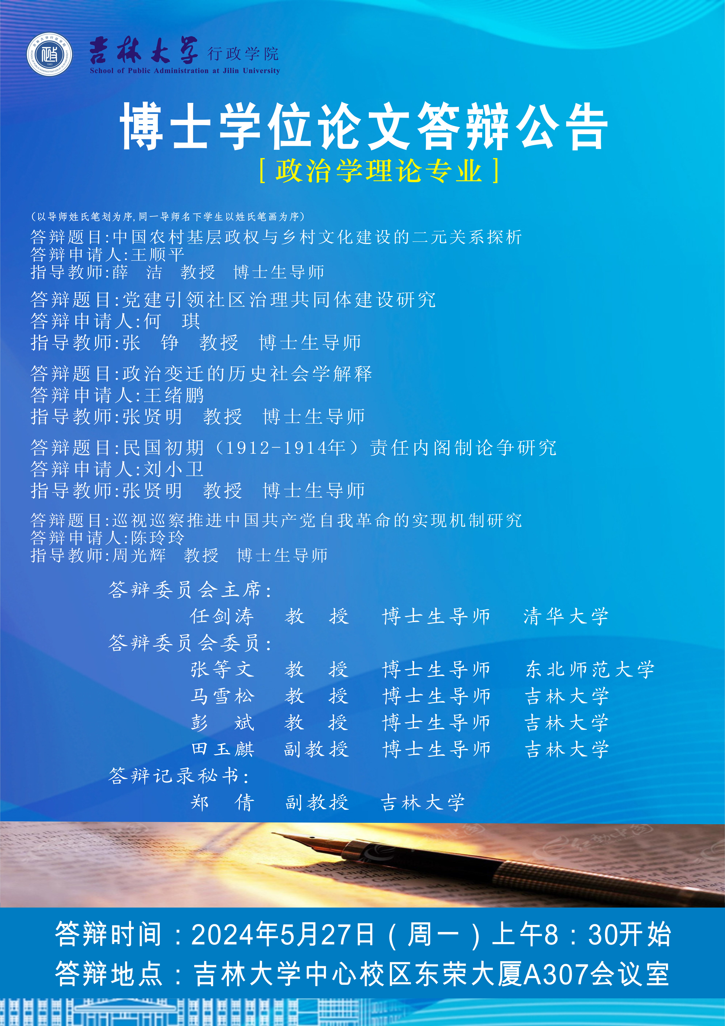 答辩时间:2024年5月27日(周一)上午8:30开始