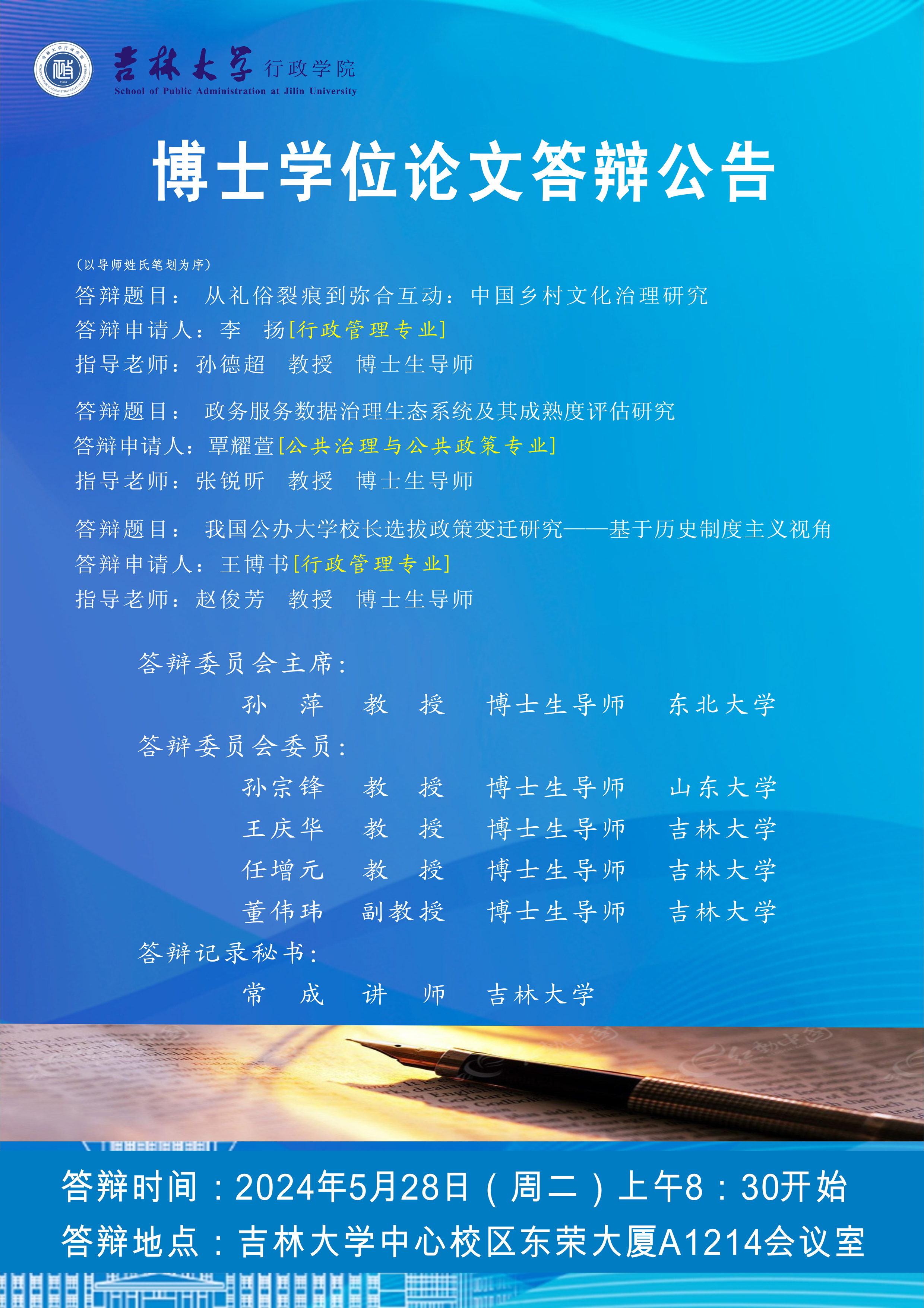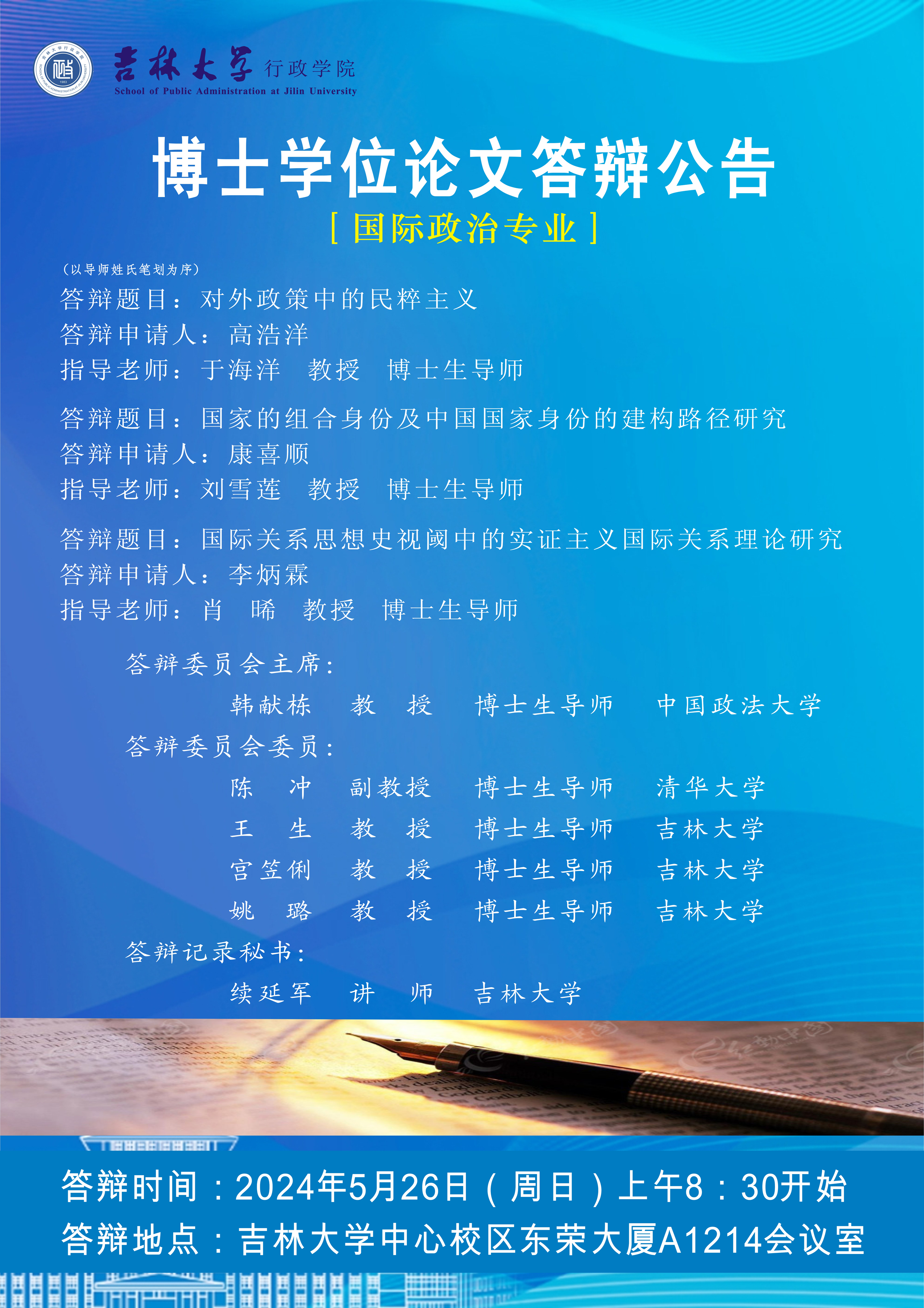 答辩时间:2024年5月26日(周日)上午8:30开始