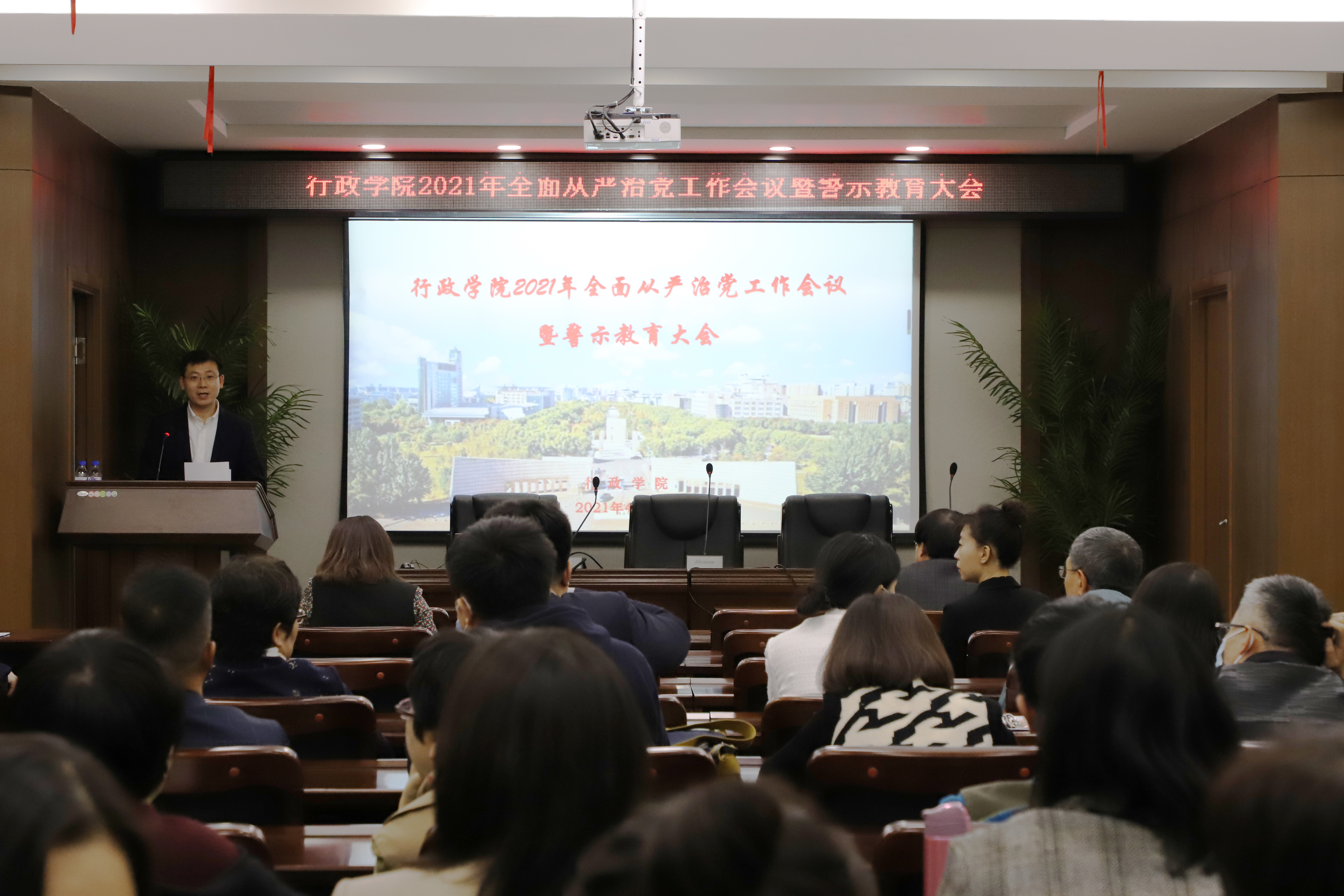 2021年全面从严治党工作会议暨警示教育大会上的讲话精神,并结合学院改革发展实际对2021年学院全面从严治党工作的主要任务进行了部署。他强调,全院上下要认真贯彻落实学校党委全面从严治党和警示教育会议精神,以违纪违法典型案例为戒,树立良好的纪律意识和规矩意识,树牢红线意识和底线思维,时刻保持清醒头脑,不断加强自身廉洁风险防控;要立行立改,彻底整改,坚决贯彻落实中央“八项规定”精神,有针对性地开展自查整改,加强管理、堵塞漏洞、扎紧制度的笼子,实现精细化管理,防范廉政风险;要坚持不懈纠正“四风”,以优良的党风政风带动学风考风教风,共同营造风清气正的良好政治生态。