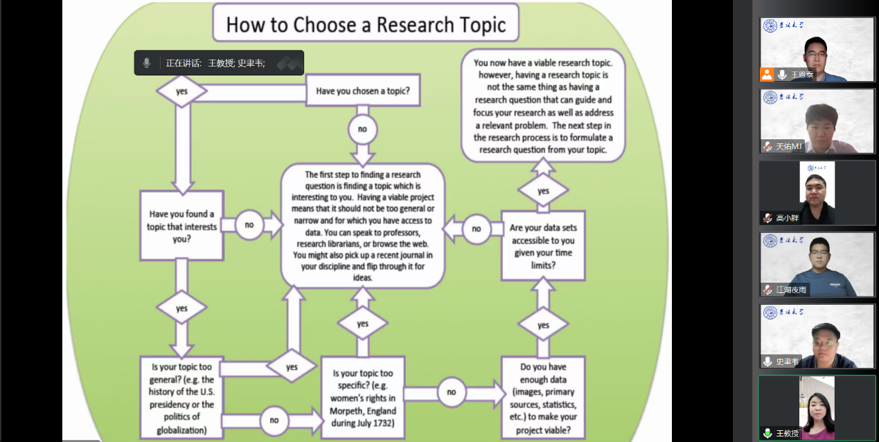 522日,系列讲座第三场,王敏娟教授为研究生同学分享发表学术论文的技巧,从选题到文献分析,从数据收集到英语写作,旨在帮助研究生同学更好地出版自己的研究成果。王敏娟教授首先从选题出发,强调研究人员在选题时应该选择一个有研究价值和创新性的课题。她鼓励大家密切关注当前热门话题和前沿技术,找到一个具体的研究问题,并确保题目的可行性和研究资源的可获得性。王敏娟教授提醒研究生同学要养成广泛阅读相关领域的文献的学习习惯,对已有的研究成果和观点进行梳理和分析。通过对文献的批判性思考和综合分析,可以为研究提供理论框架和方法,并避免重复或无效的研究方向。王敏娟教授重点介绍了数据收集的经验与技巧。王敏娟教授强调,研究人员应该根据研究设计和方法选择合适的数据收集工具和技术。她提醒大家,数据的质量和可靠性对于论文的可信度至关重要。最后,王敏娟教授特别强调了英语写作的重要性。研究人员在写作过程中应该注重语法和拼写的准确性,使用清晰简洁的语言表达观点。此外,她建议研究生同学在撰写论文之前,多阅读国际期刊上的优秀论文,以提高自己的写作技巧和学术表达能力。王敏娟教授还鼓励同学们多下苦功夫提升学术能力,并预祝同学们发表高质量的国际期刊论文。