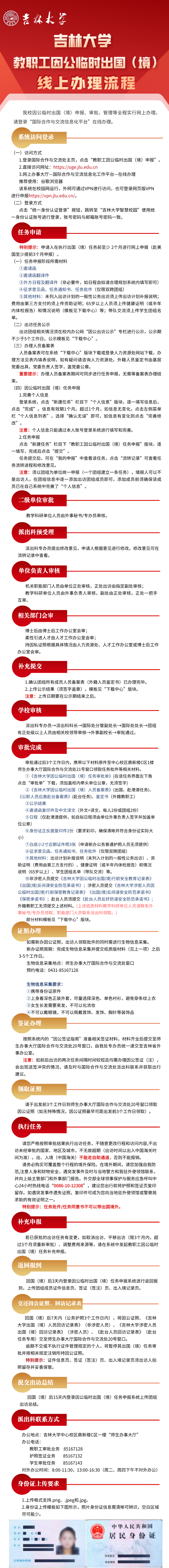 注:2024年学校已启用国际合作与交流信息化平台进行审批,使用手册可见附件,相关流程可见下图,请各位老师务必预留至少2个月(赴美建议提前3个月以上)联系学院外事秘书办理相关业务,谢谢!