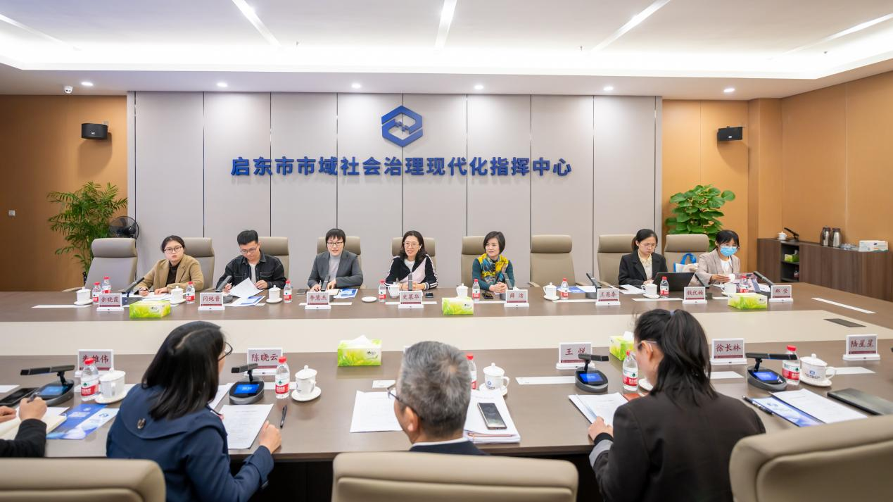 此外,学院一行在启东市市域社会治理现代化指挥中心参观了12345便民服务热线十周年成果图片展,基于在12345热线话务大厅的亲身体验、深入感受“一张图”综合执法新模式,拓展“网络+网格”治理创新思路。在座谈交流环节,我院师生围绕市域指挥中心成立过程中出现的困难、12345热线接话员管理工作以及多部门廉政监管等方面的问题进行提问,启东市市委政法委副书记陈燕飞主任就以上问题进行了详细解答。