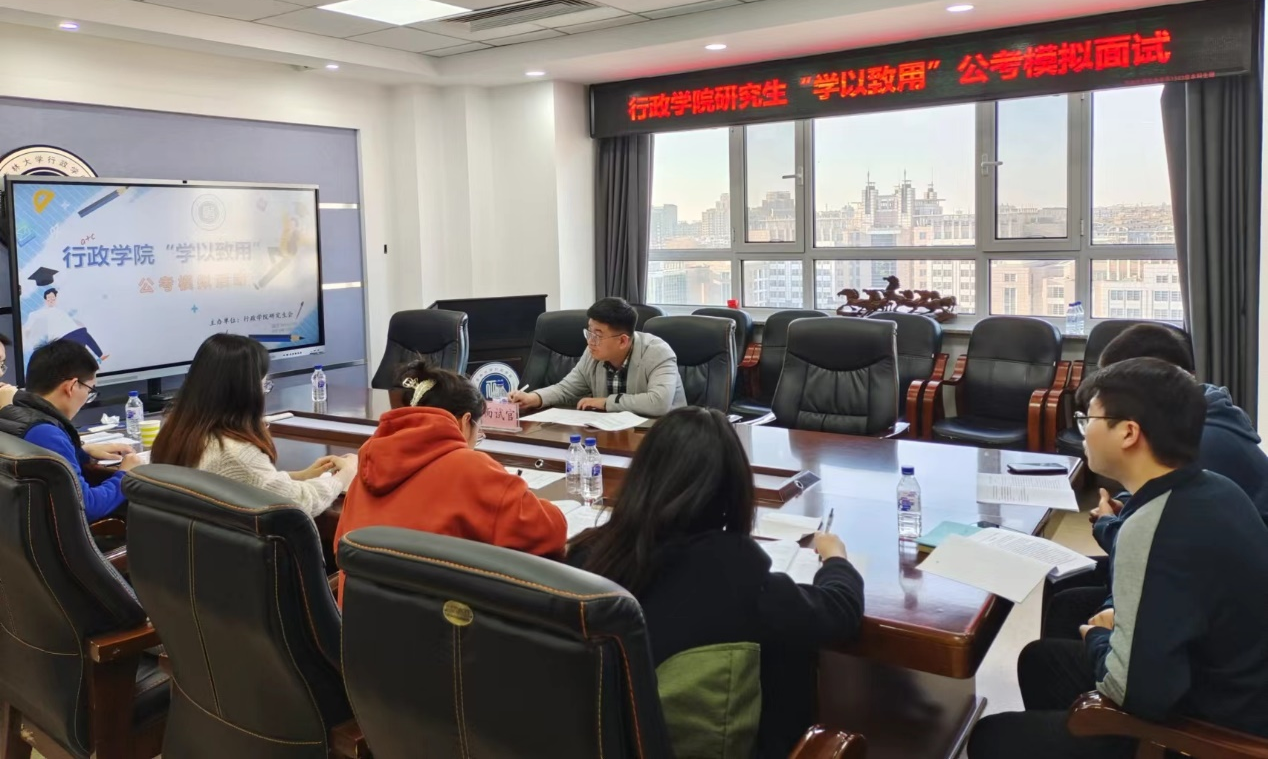 举办研究生就业提升计划——“学以致用”公考模拟面试活动。本次活动分为结构化面试和无领导小组讨论两个部分,研究生会邀请了公考专业指导老师担任考官,分组对同学们进行两种类型的面试考核。