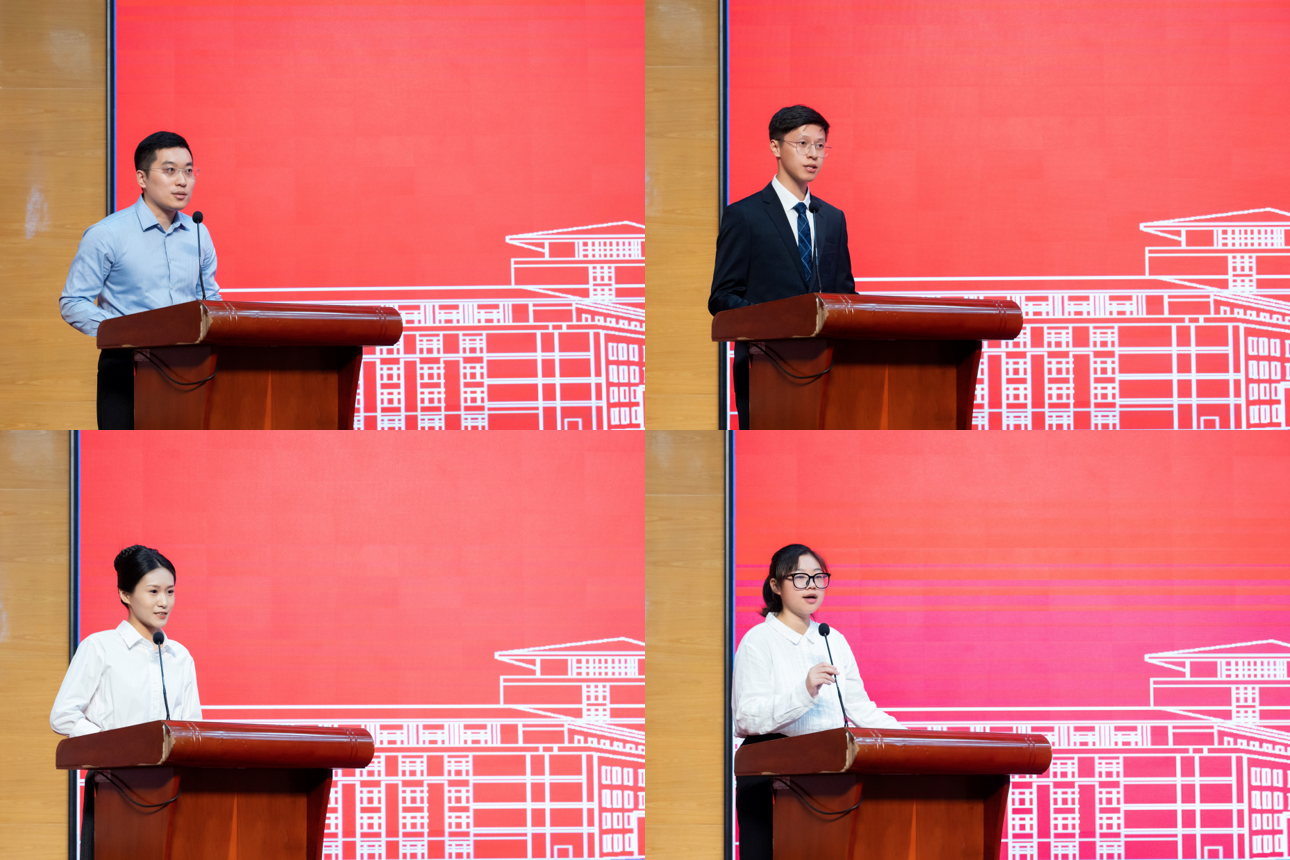 青年教师、本科生班主任常成代表学院教师发言,从厚重、包容、求实三个方面勉励新生勤奋求学,开拓进取。2023级硕士研究生汤沁代表在校生发言,以亲身经历带领新生感受学院治学的深度、求索的广度、育人的温度。2024级博士研究生李艾蒙代表新入学研究生发言,与同学们分享坚定信仰、从容尝试、修身养性的人生课题。优质生源地高中毕业生尤佳怡代表新入学本科生发言,号召全体同学与时代同行、以青春作伴、为梦想追逐。